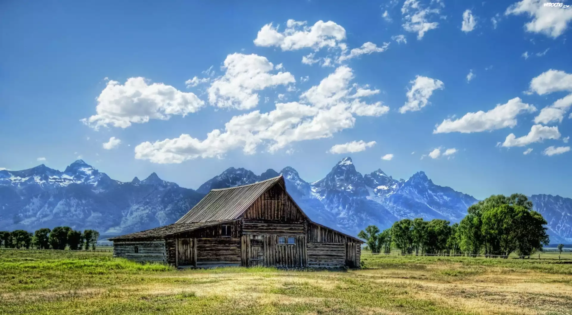 Zdjęcia, Szopa, Góry, Drzewa, Chmury