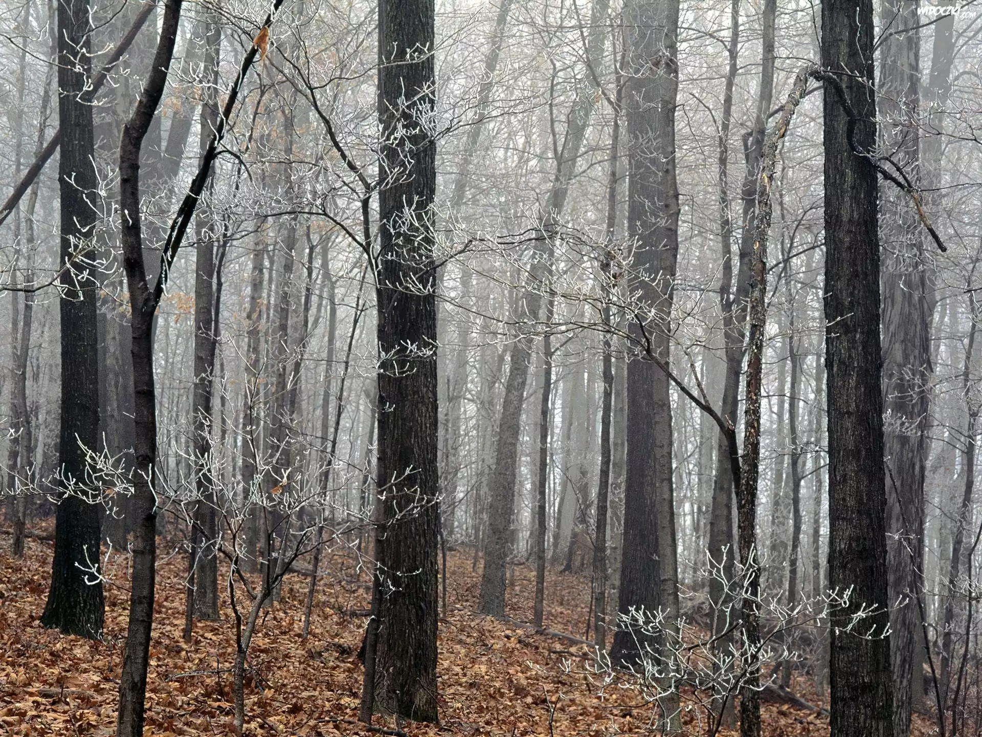 Zdjęcia, Drzewa, Szron, Las