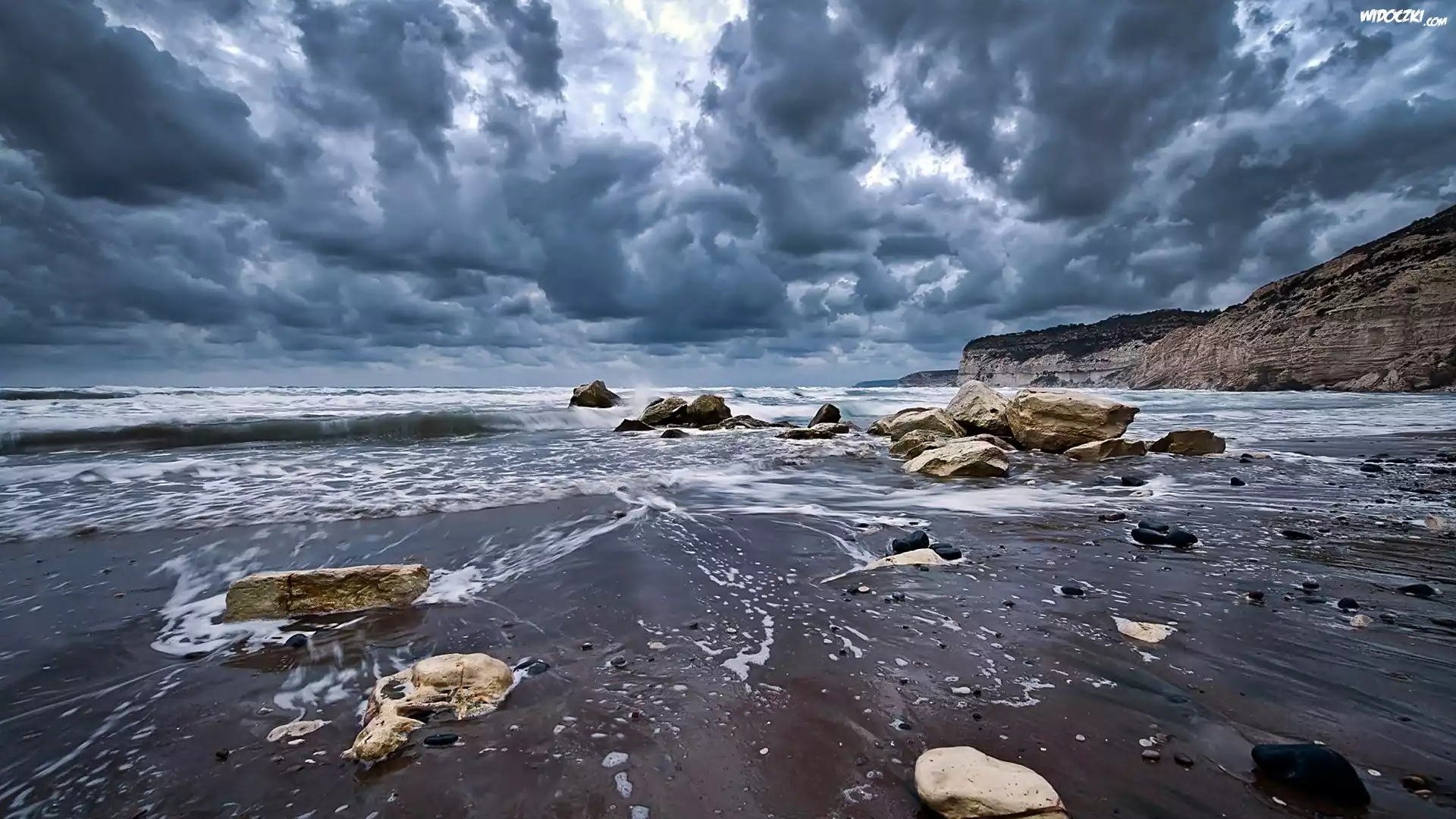 Zdjęcia, Sztormowe, Chmury, Morze, Klify, Głazy