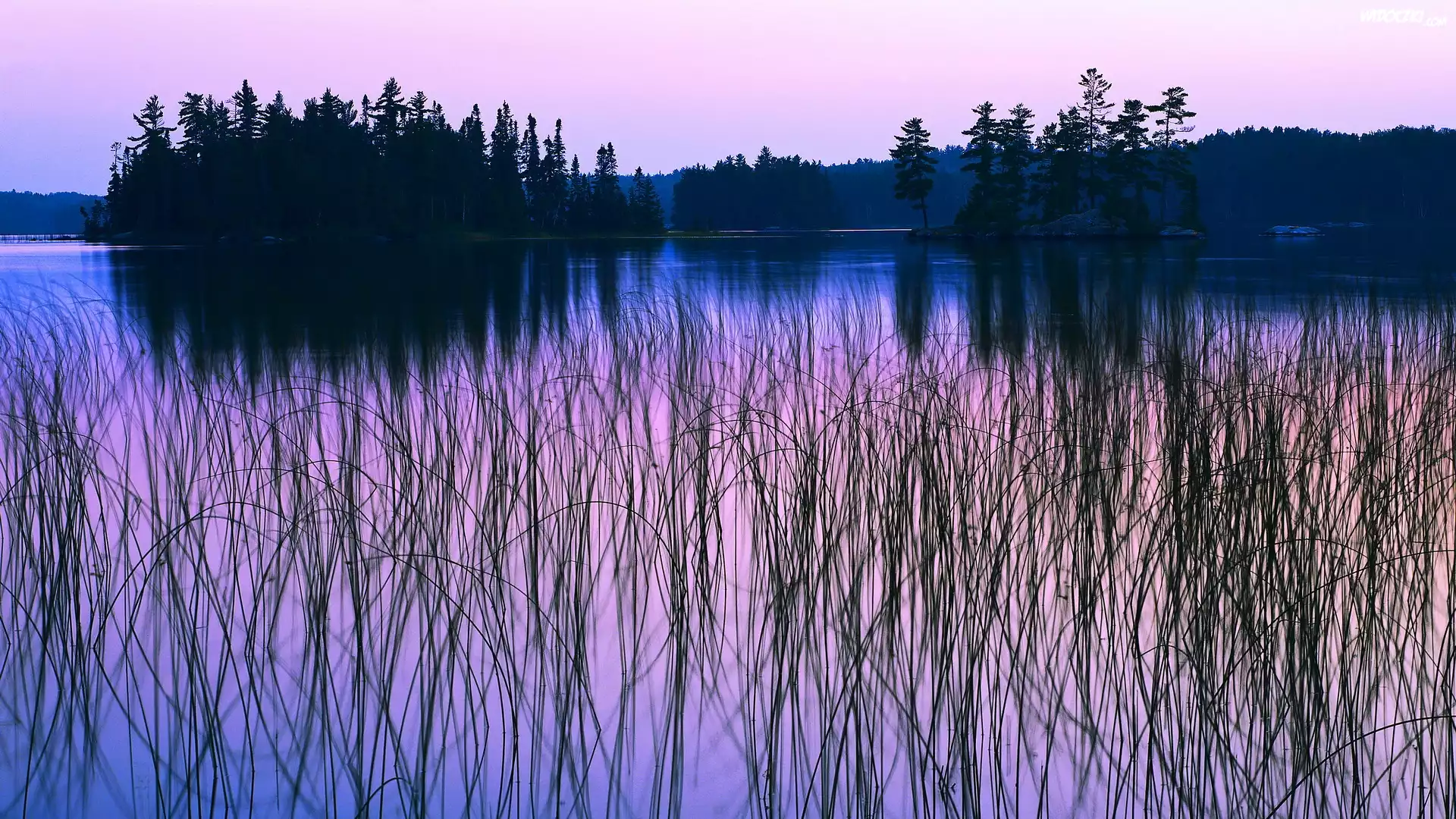 Zdj臋cia, Jezioro, Szuwary, Drzewa