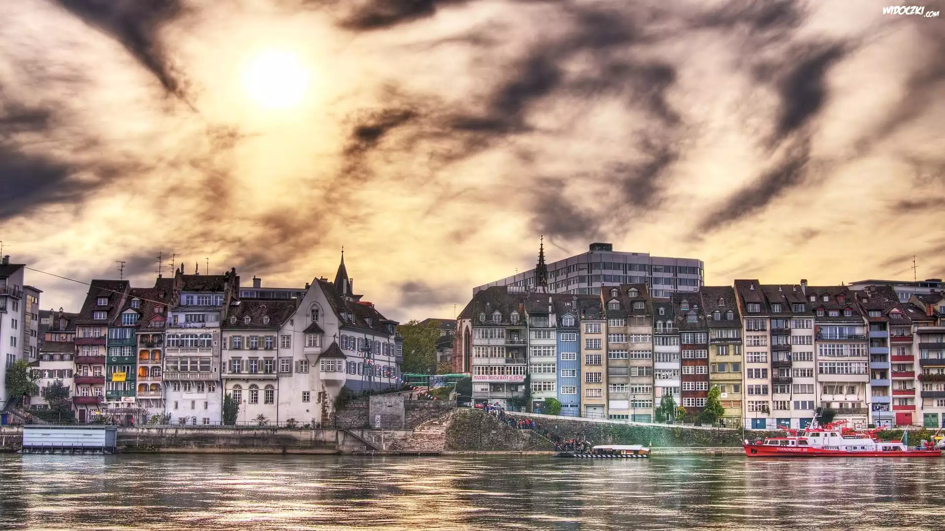 Szwajcaria, Bazylea, Miasto, Domy, Rzeka