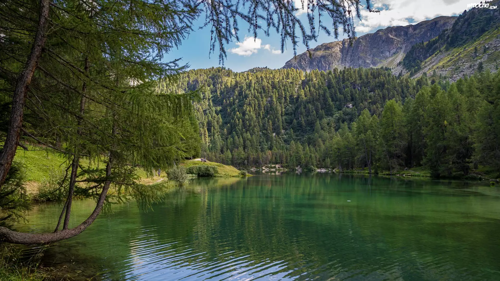 Szwajcaria, Góry, Jezioro, Las, Drzewa
