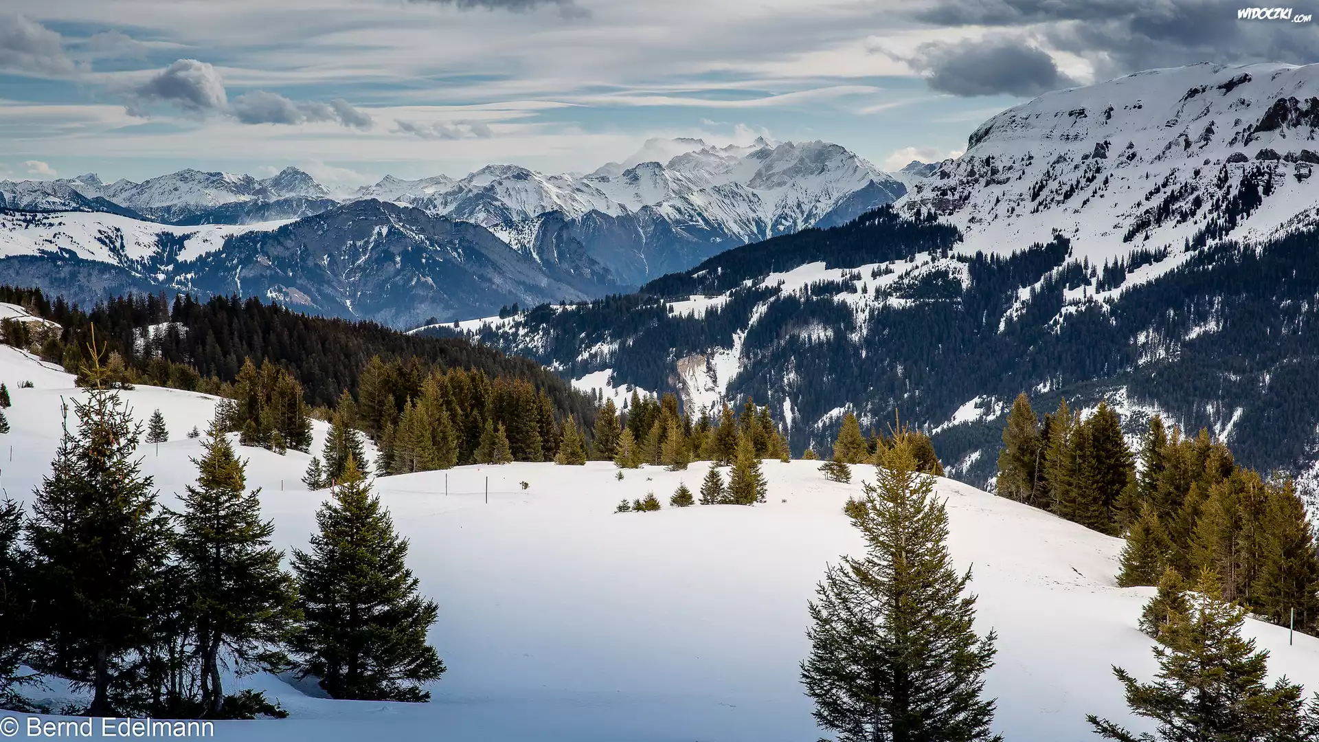 Zdjęcia, Szwajcaria, Alpy Glarneńskie, Góry, Zima, Drzewa