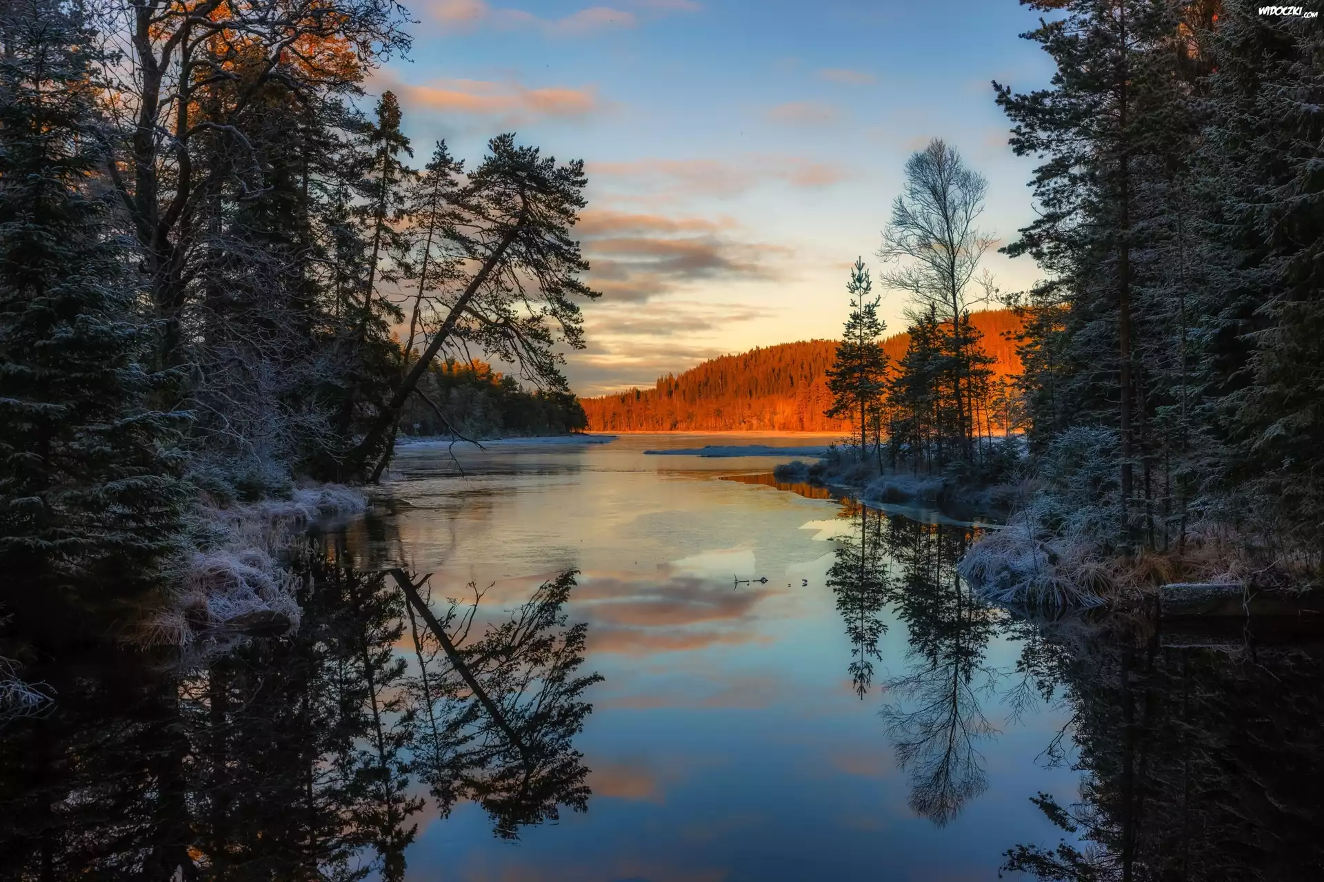 Zdjęcia, Szwecja, Las, Rzeka, Zima