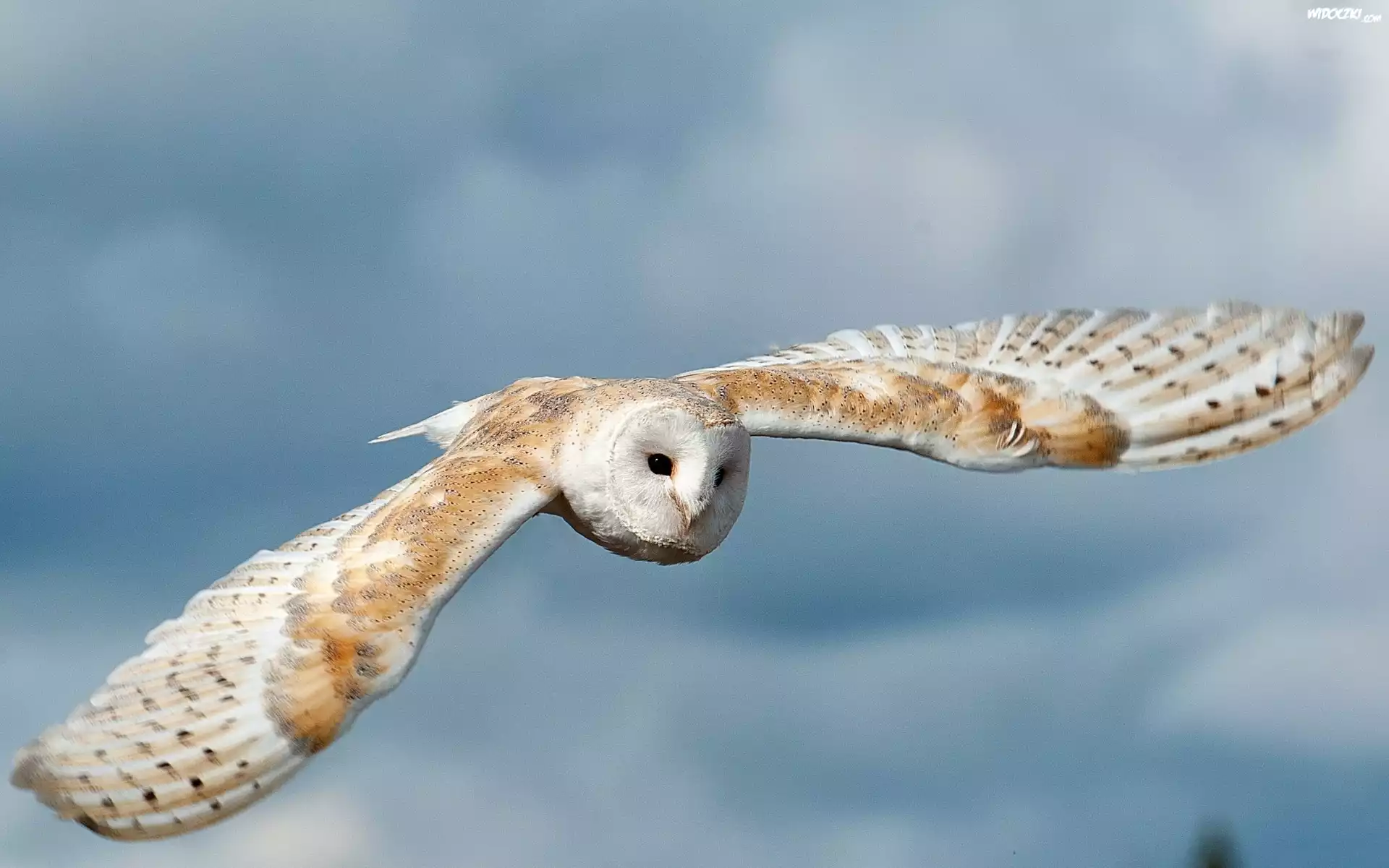 Zdjęcia, Szybująca, Sowa, Płomykówka, Niebo