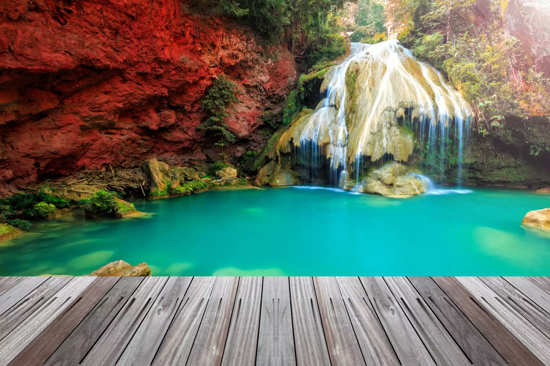 Zdjęcia, Tajlandia, Wodospad, Skały, Pomost