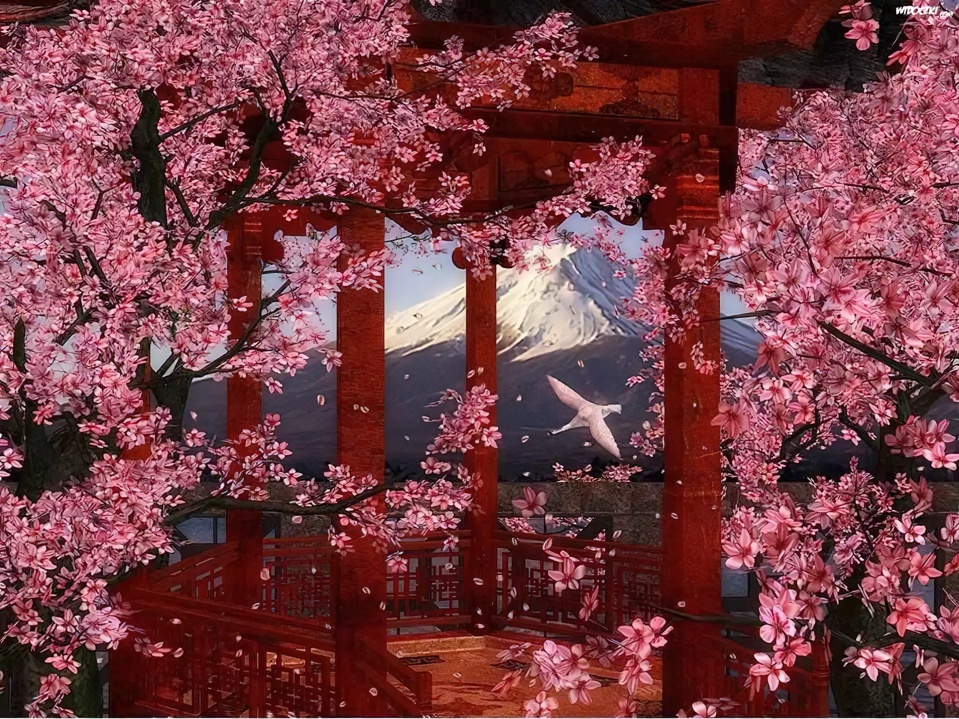 Zdjęcia, Taras, Wiśnia, Japońska, Góry
