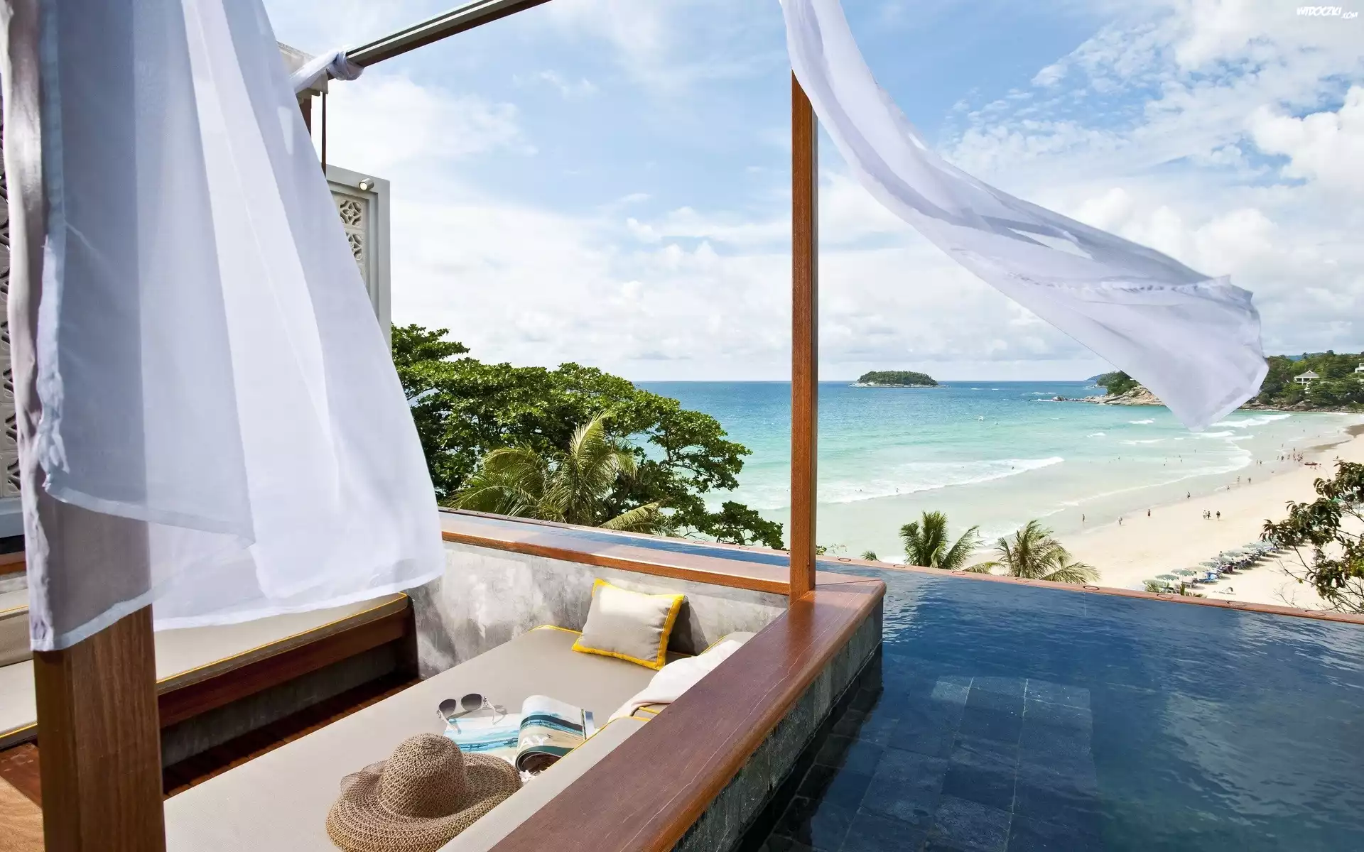 Zdjęcia, Taras, Firanka, Plaża, Morze