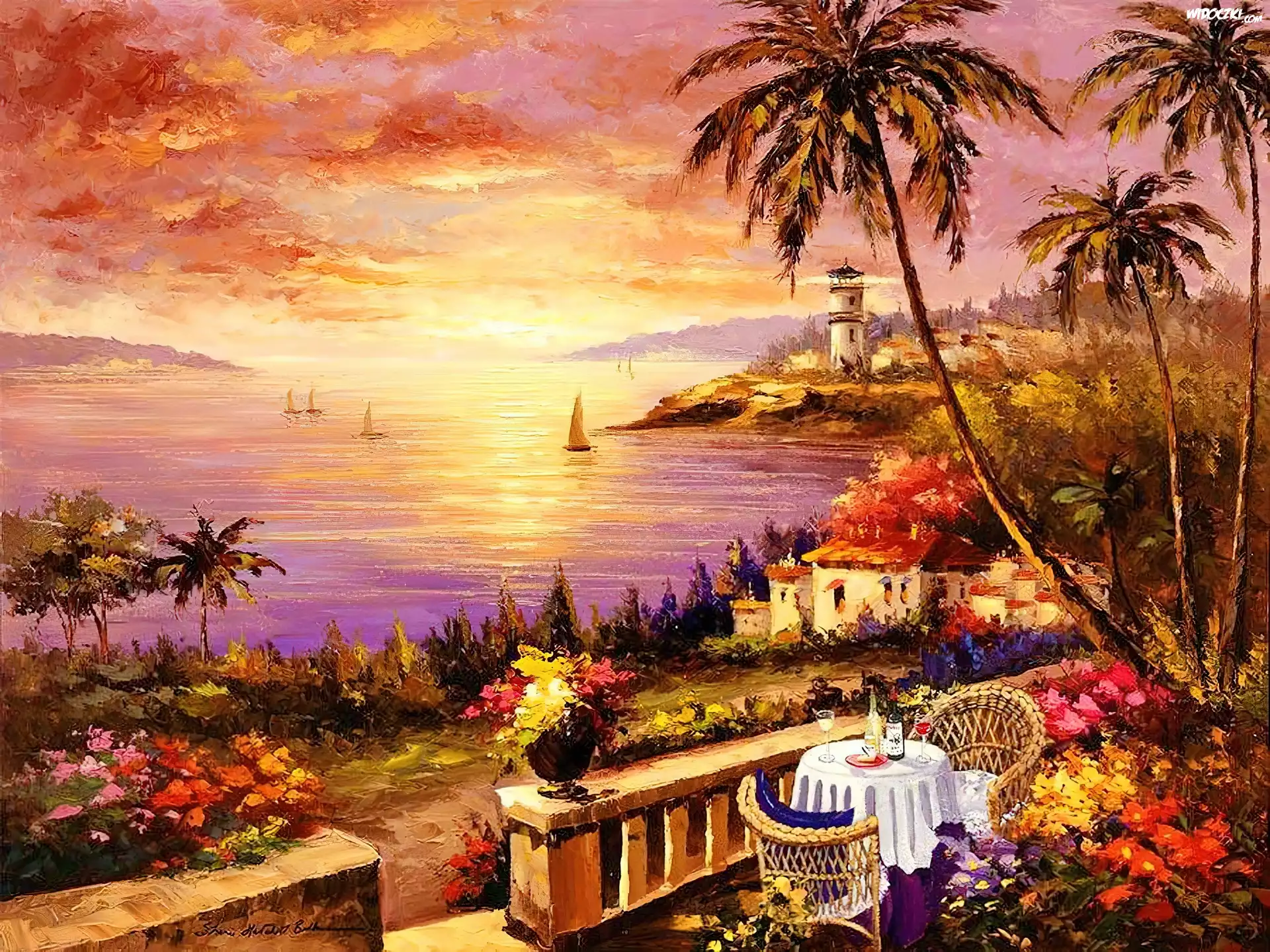 Zdjęcia, Taras, Stolik, Morze, Zachód, Słońca