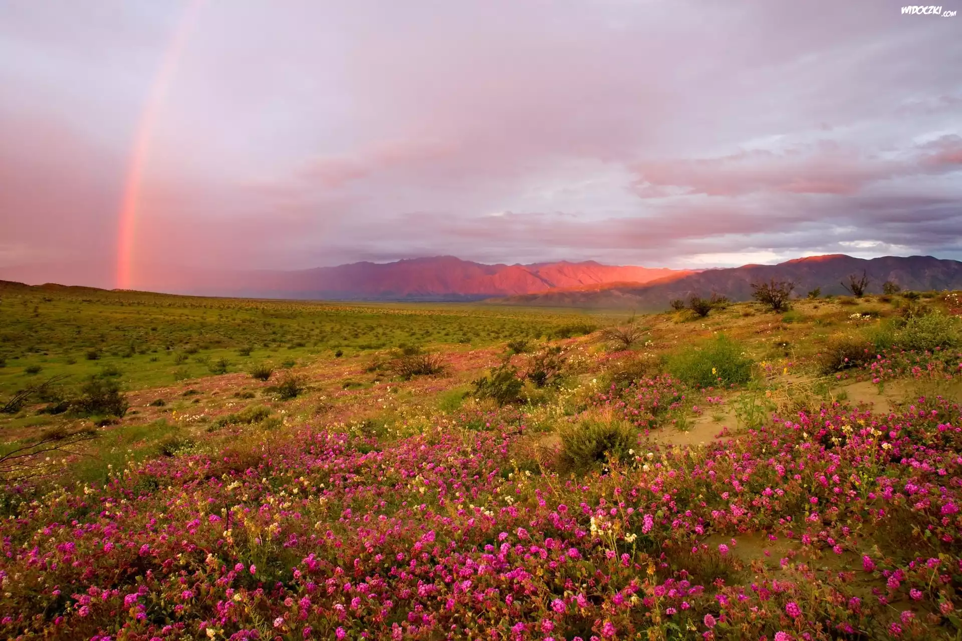 Zdjęcia, Łąka, Tęcza, Wzgórza