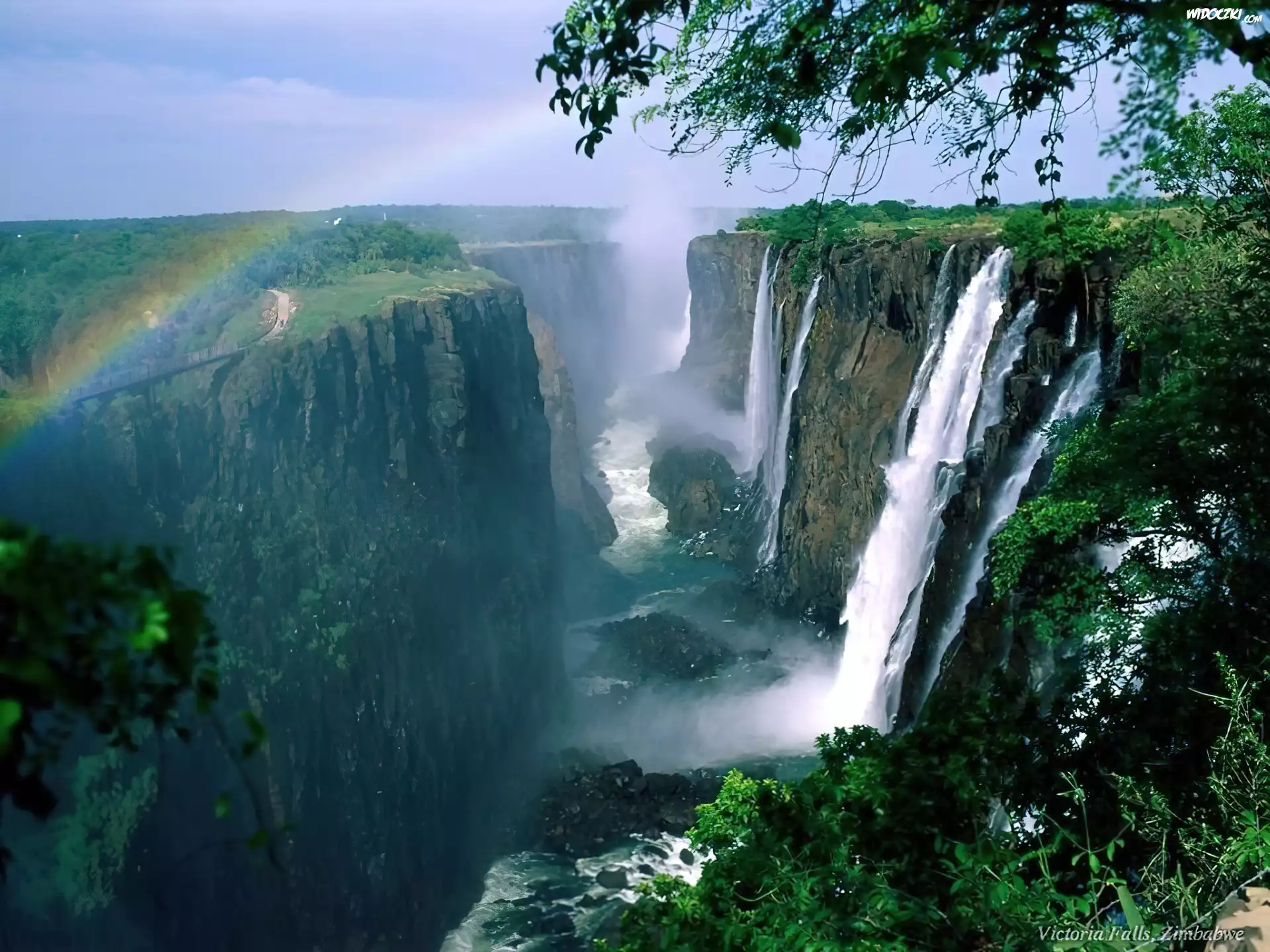Wodospad, Tęcza, Niebo, Skały Krajobraz, Wodospad, Woda Wodospad Wodospad Wielki, Kanion Tęcza, Kanion, Wodospadu, Republika Zambii Kanion, Czerwone, Skały, Kępy, Traw Wodospad, łąka Wodospad Kanion, Drzewa Wodospad, Wśród, Skał Kanion Kanion, Skały, Błękitne, Niebo Kanion, Niebo, Promienie, Słońca