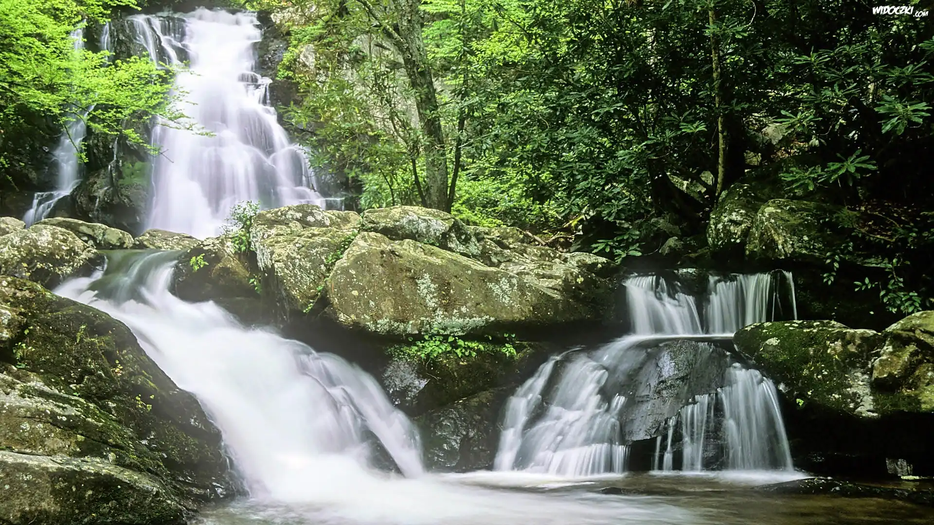 Zdjęcia, Tennessee, Park, Narodowy, Las, Skały, Wodospad