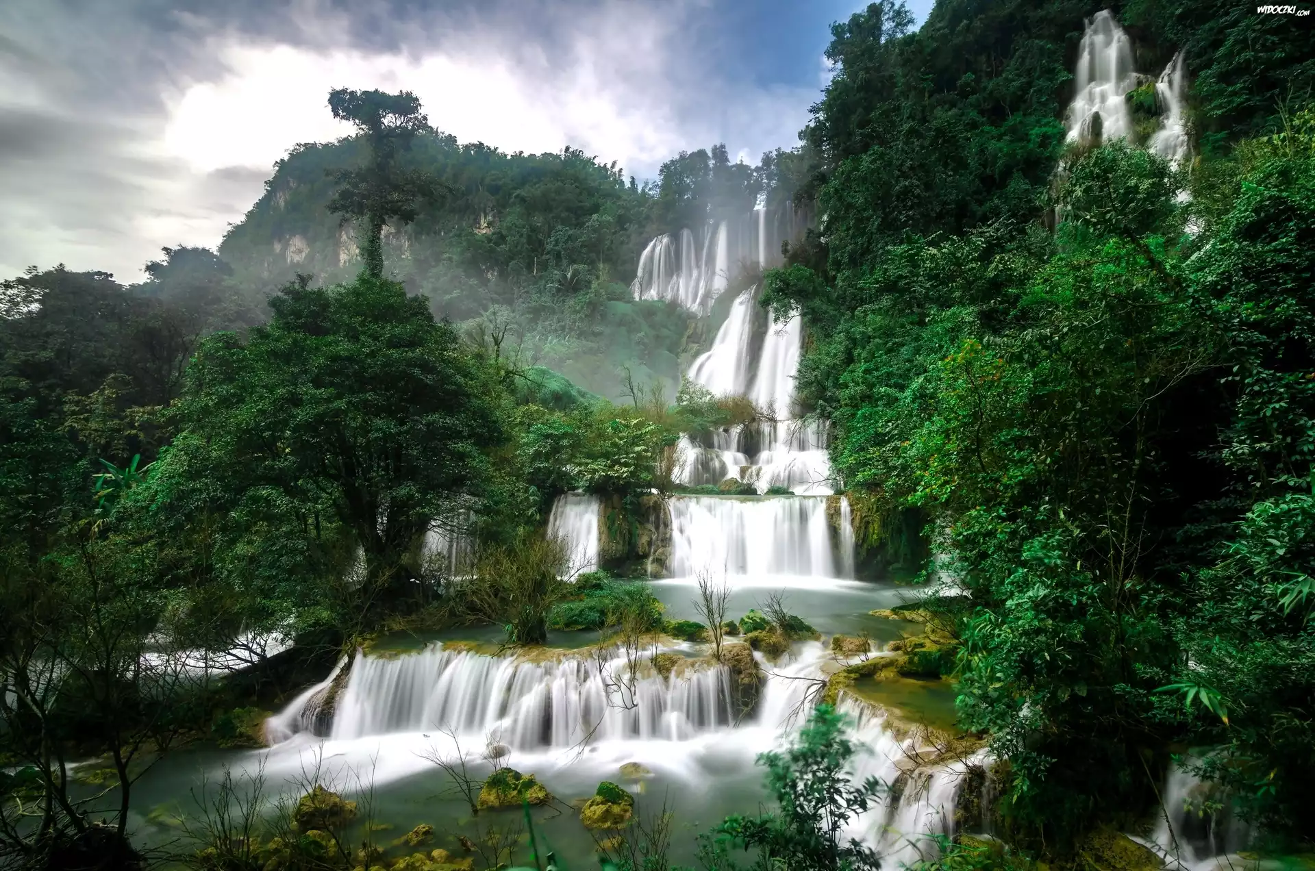 Zdjęcia, Wodospad, Thi Lo Su, Tajlandia, Kaskada, Drzewa