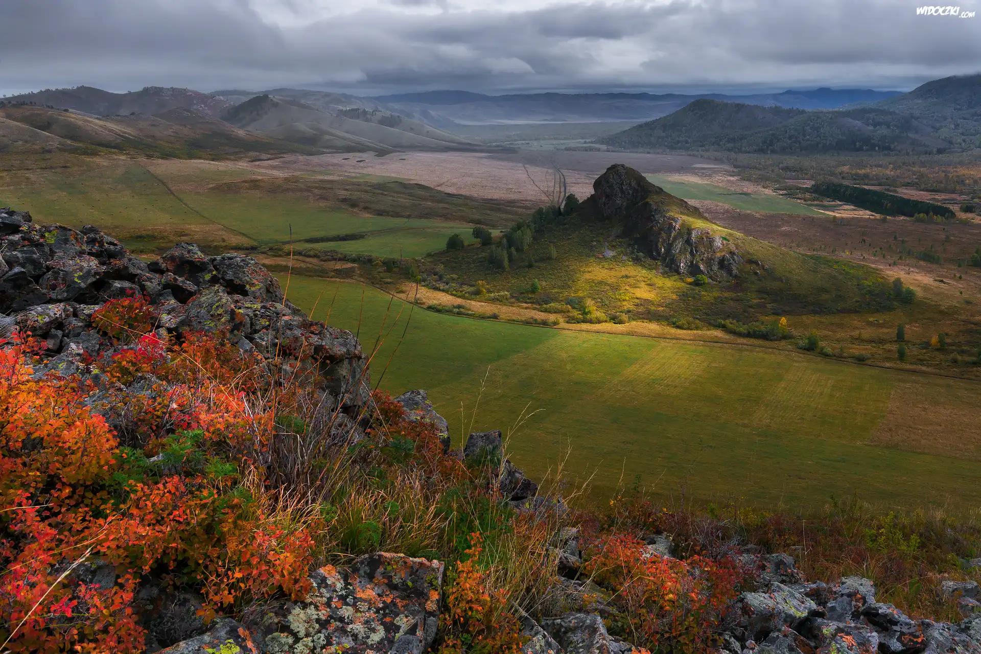 Tigirecki rezerwat przyrody, Wzgórza, Góry Tigireckie, Dolina, Skały, Rośliny, Republika Ałtaju, Rosja |