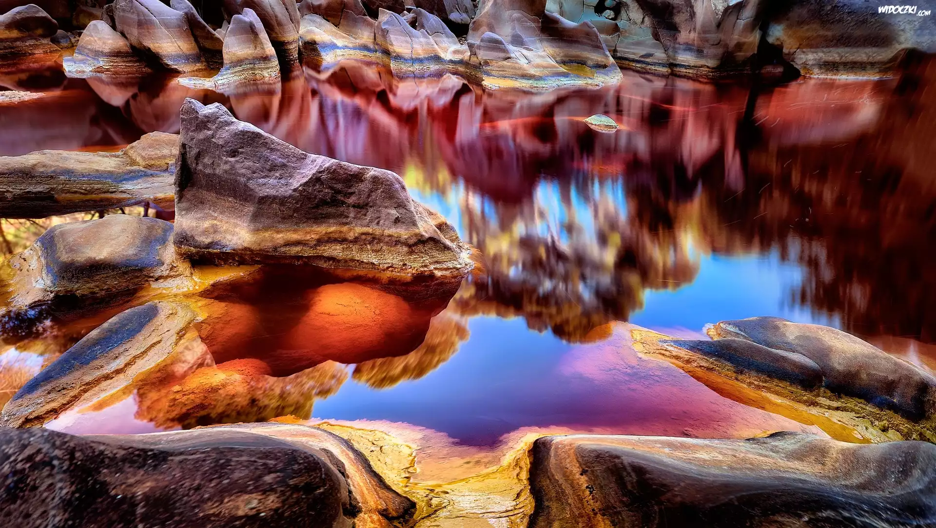 Zdjęcia, Rio Tinto, Czerwona Rzeka, Kolorowe, Skały, Hiszpania, Andaluzja