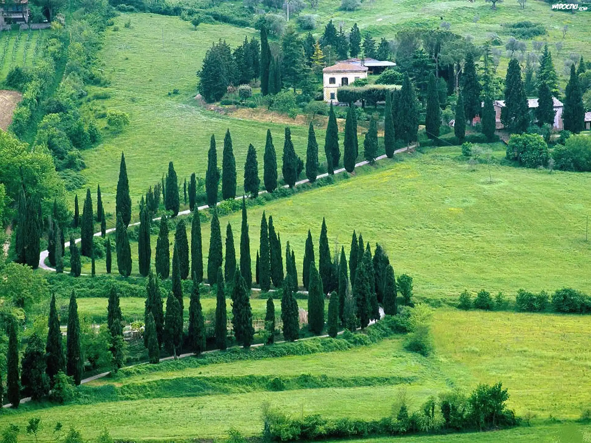 Zdjęcia, Droga, Topole, Krajobraz