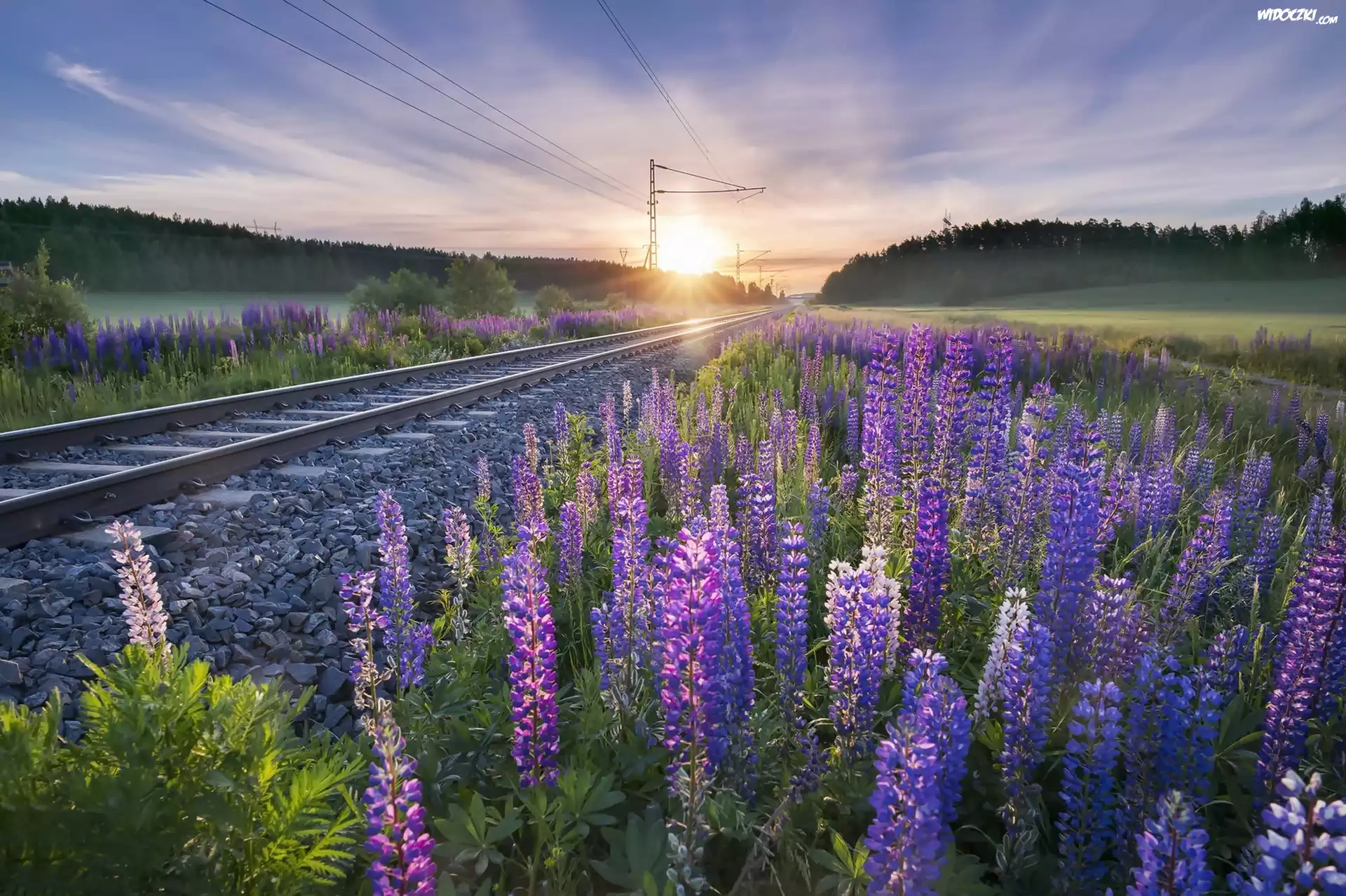 Zdjęcia, Tory kolejowe, Łubin, Wschód słońca