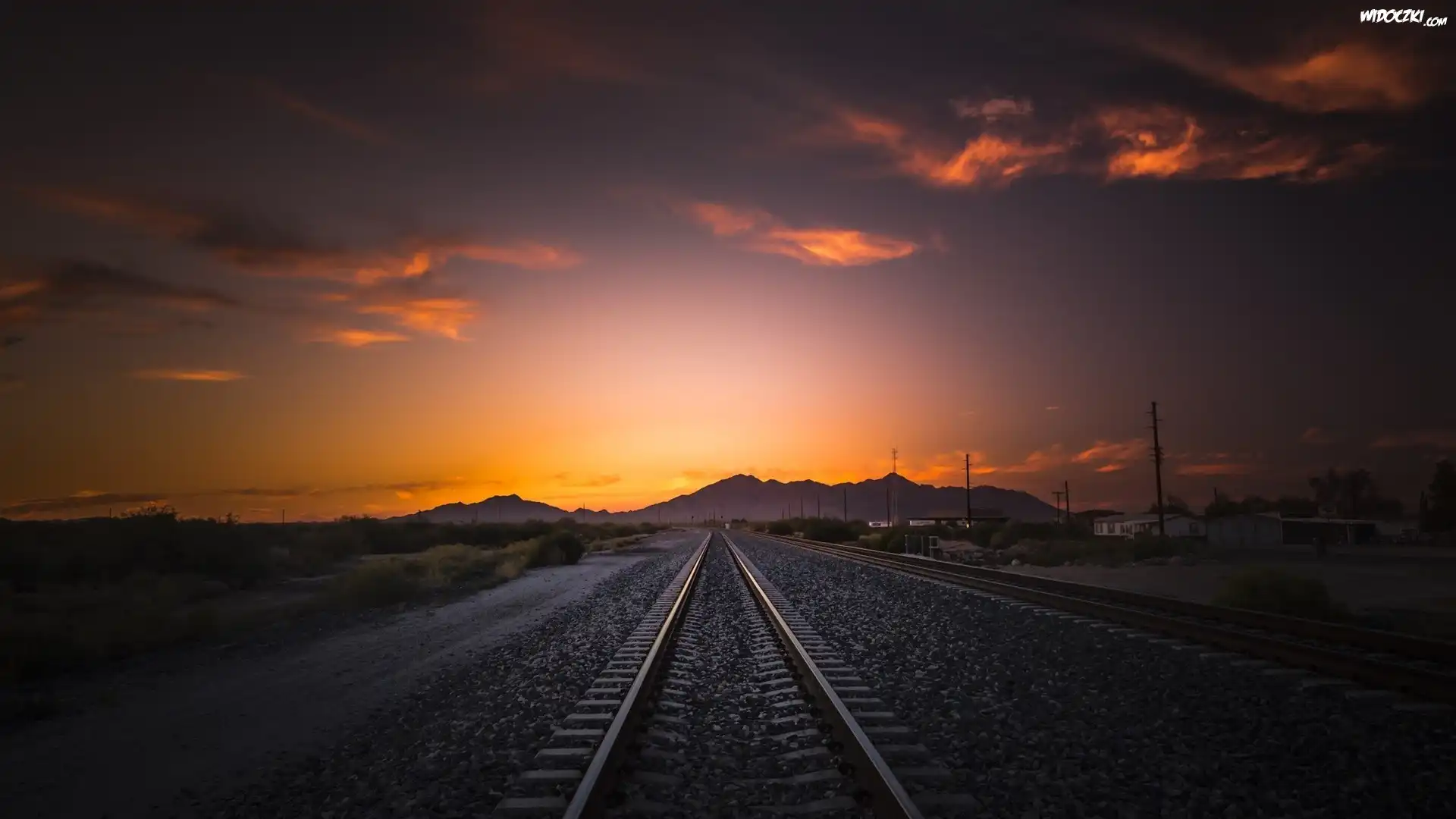 Zdjęcia, Tory kolejowe, Zachód słońca