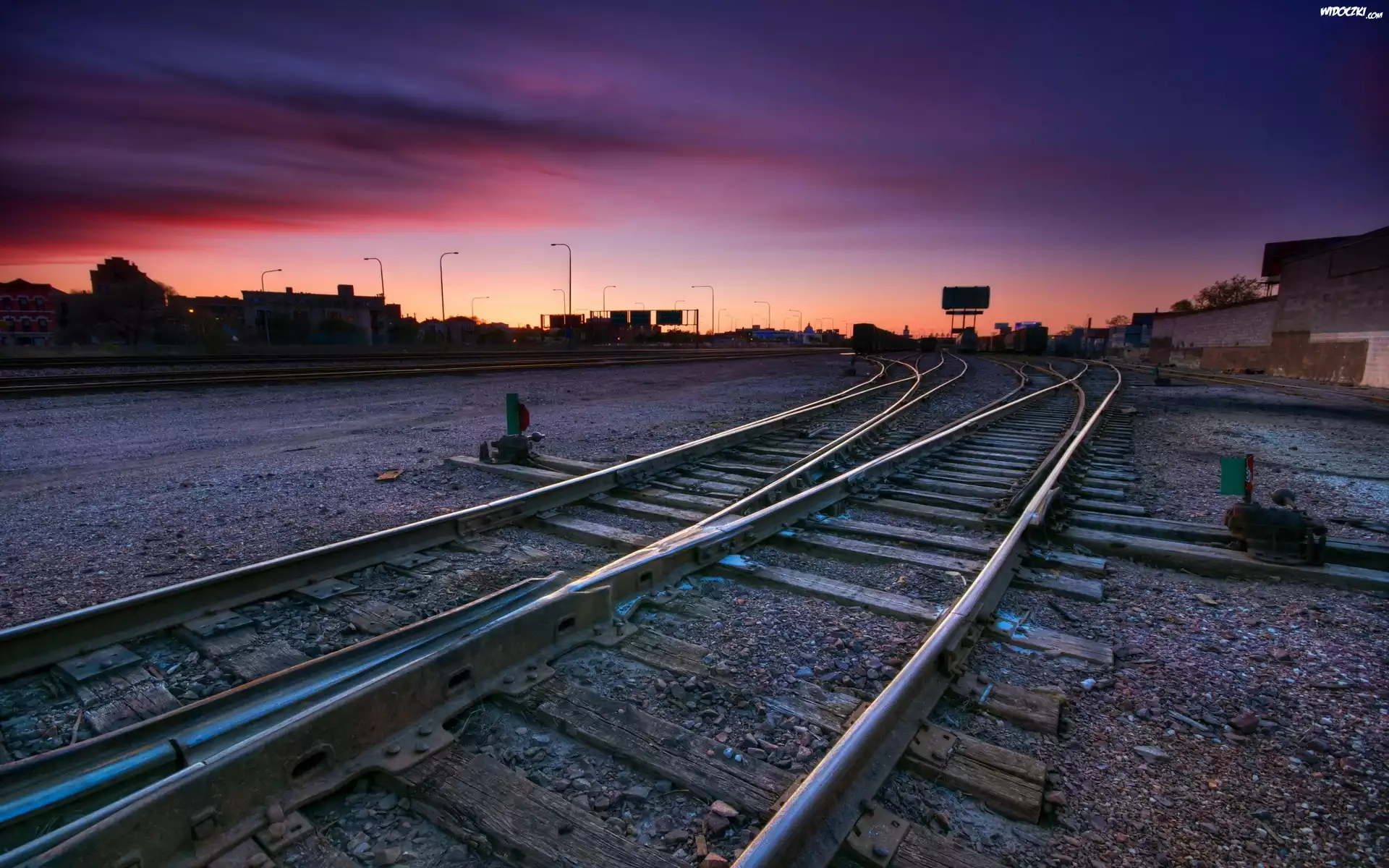 Zdjęcia, Tory, Kolejowe, Zwrotnica, Noc
