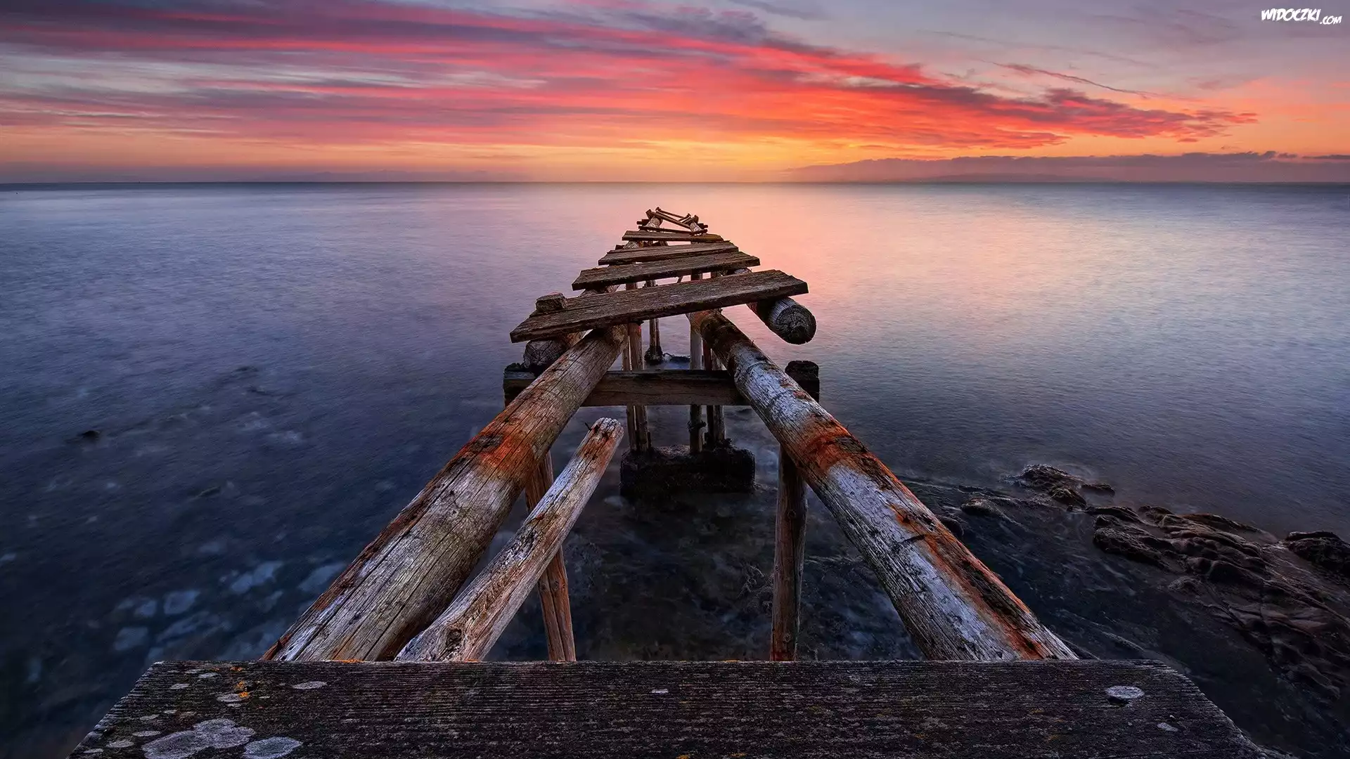 Zdjęcia, Włochy, Toskania, Zniszczone, Molo, Morze, Zachód Słońca