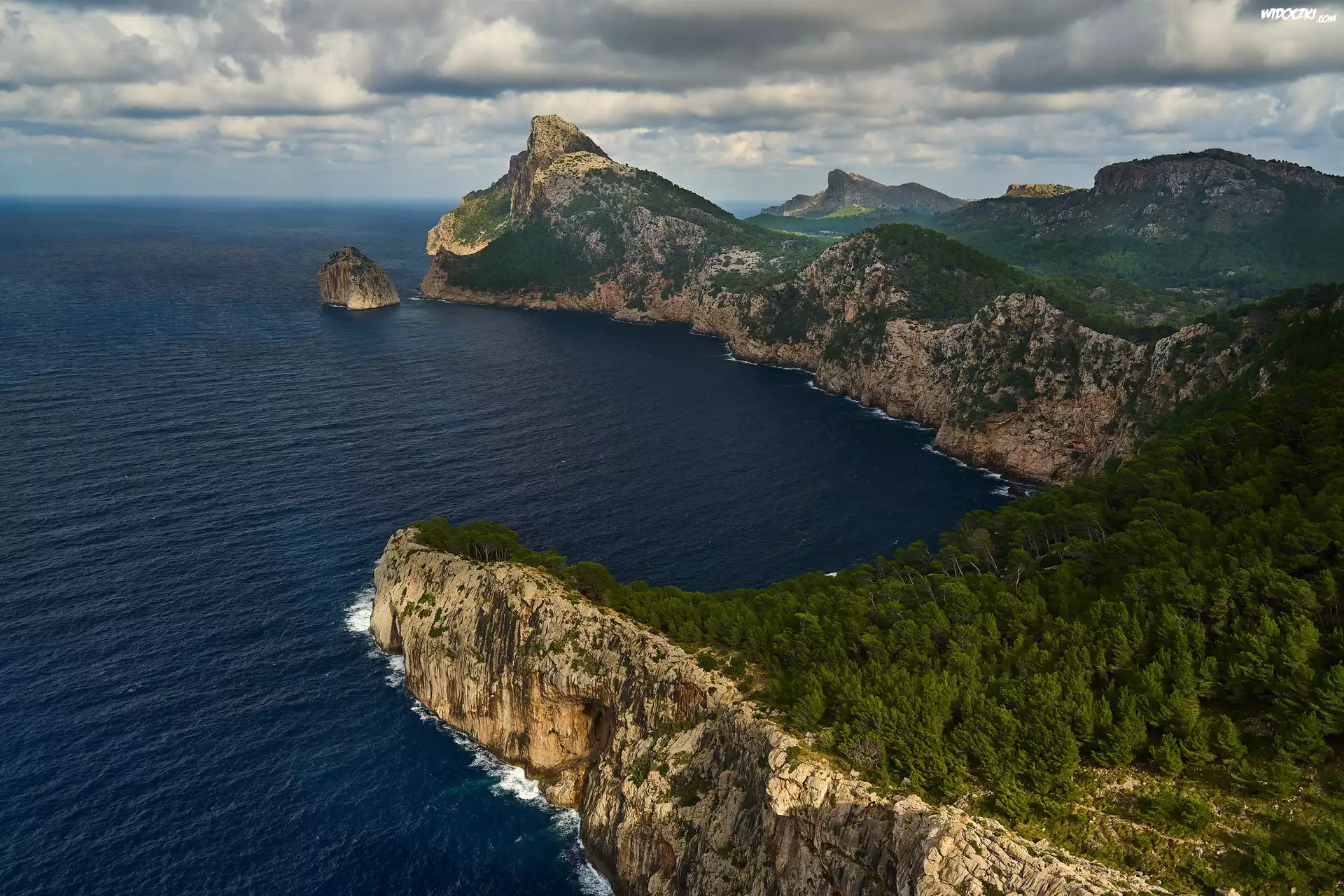 Półwysep Formentor, Wybrzeże, Klif, Góry Serra de Tramuntana, Skała, Morze, Zachód słońca, Wyspa Majorka, Hiszpania |