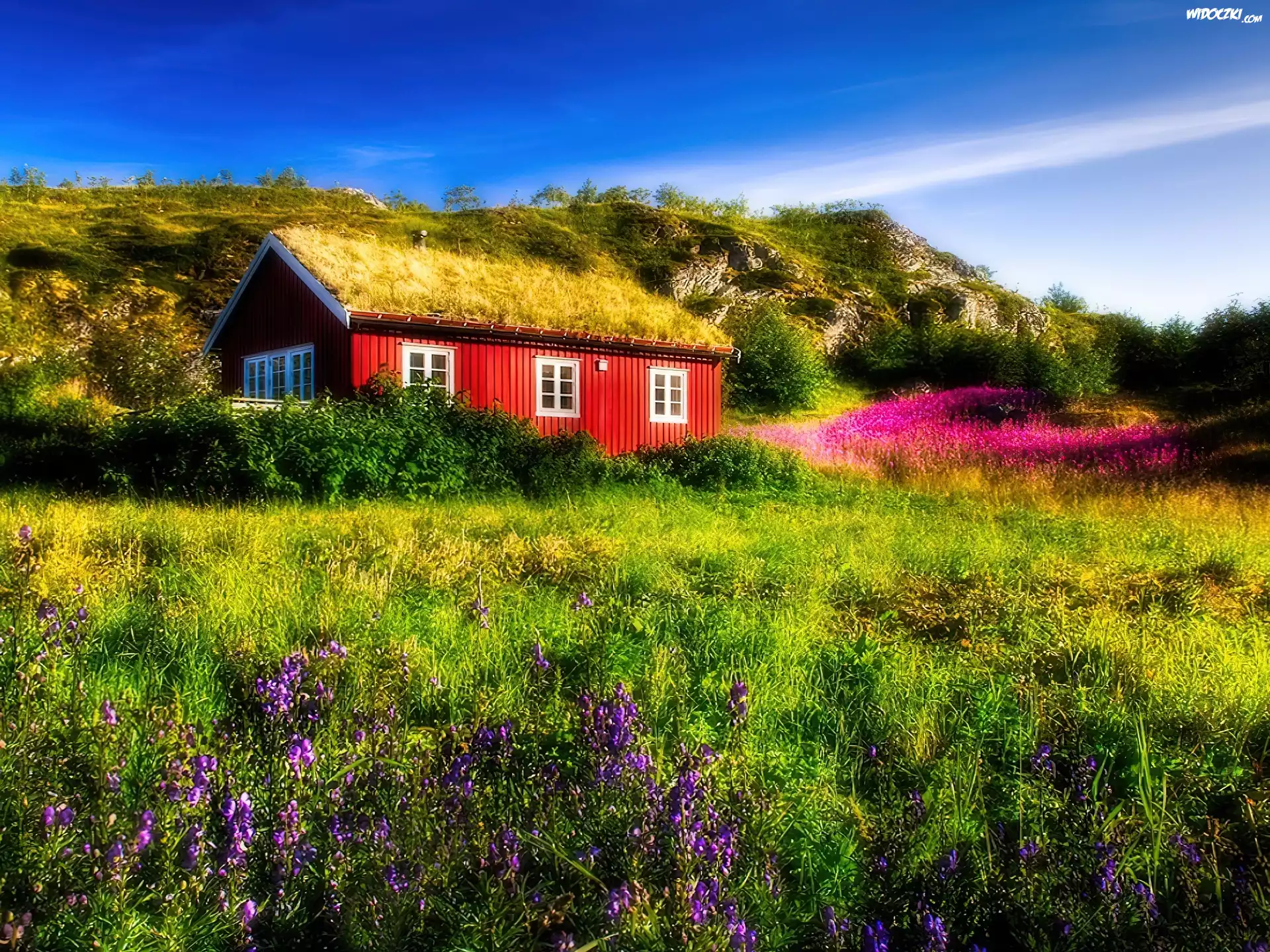 Zdjęcia, Domek, Trawa, Łąka