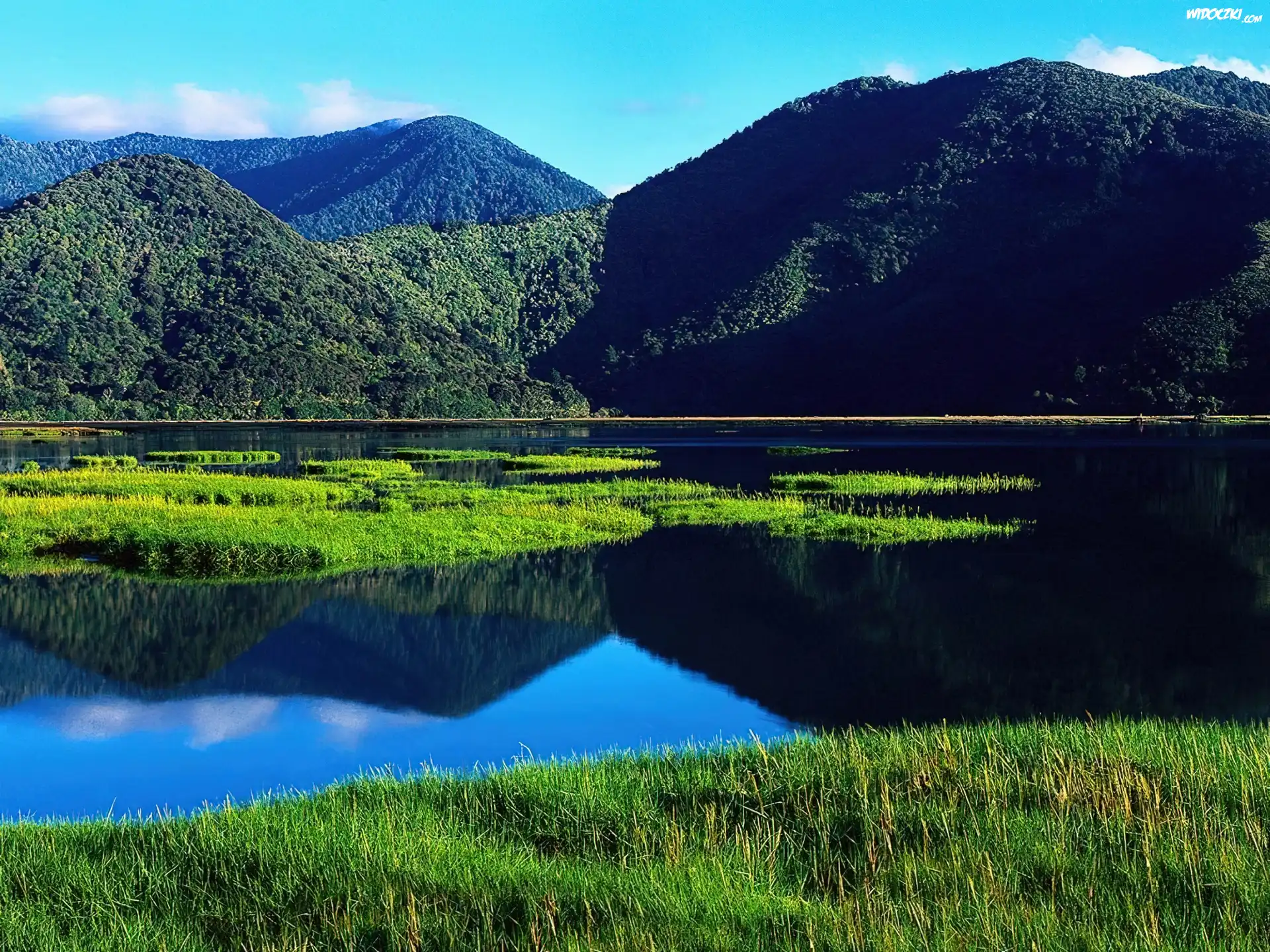 Zdjęcia, Jezioro, Trawa, Góry