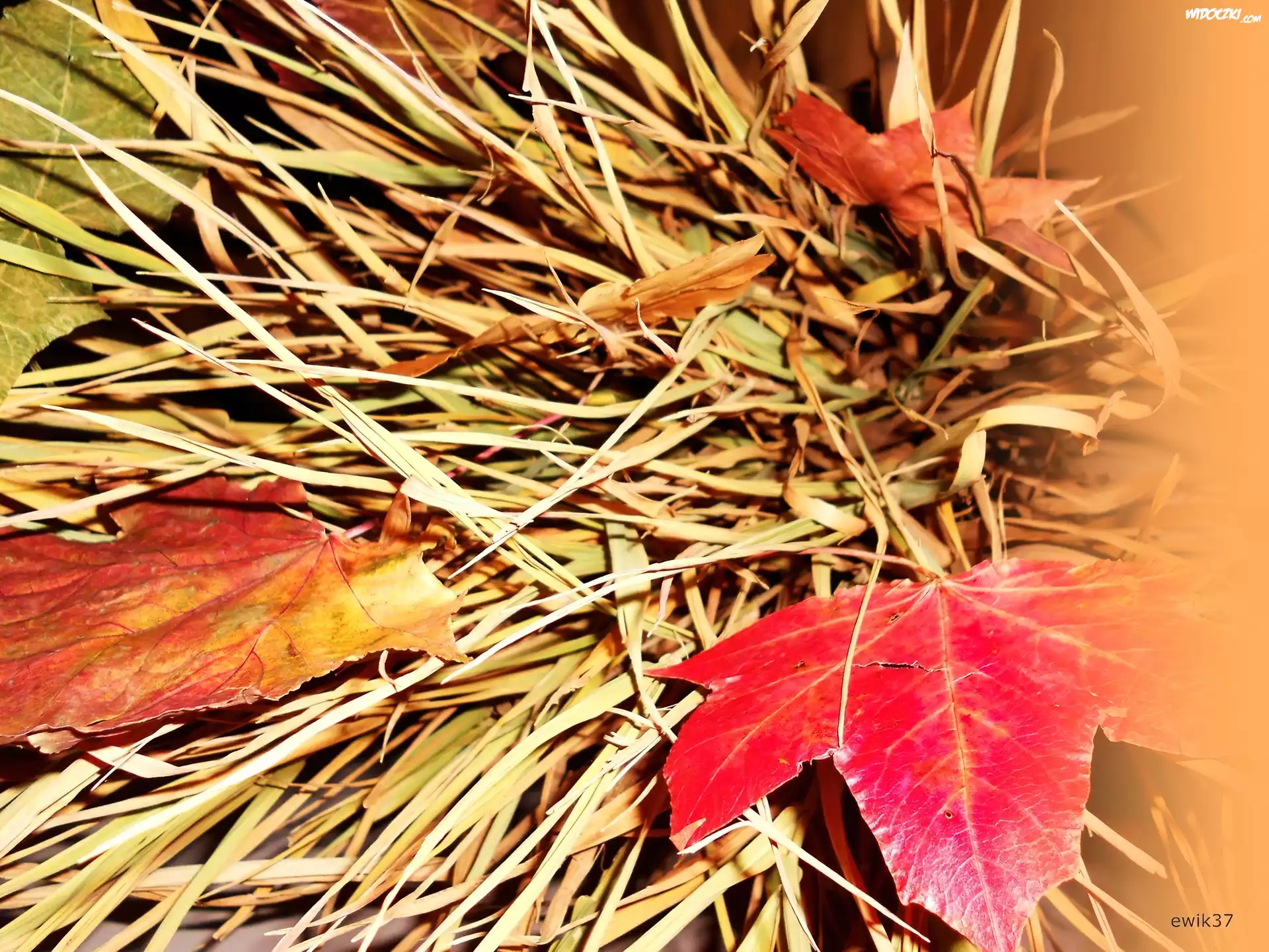 Zdjęcia, Trawa, Jesienne, Liscie, Pomarańczowe, Zabarwienie