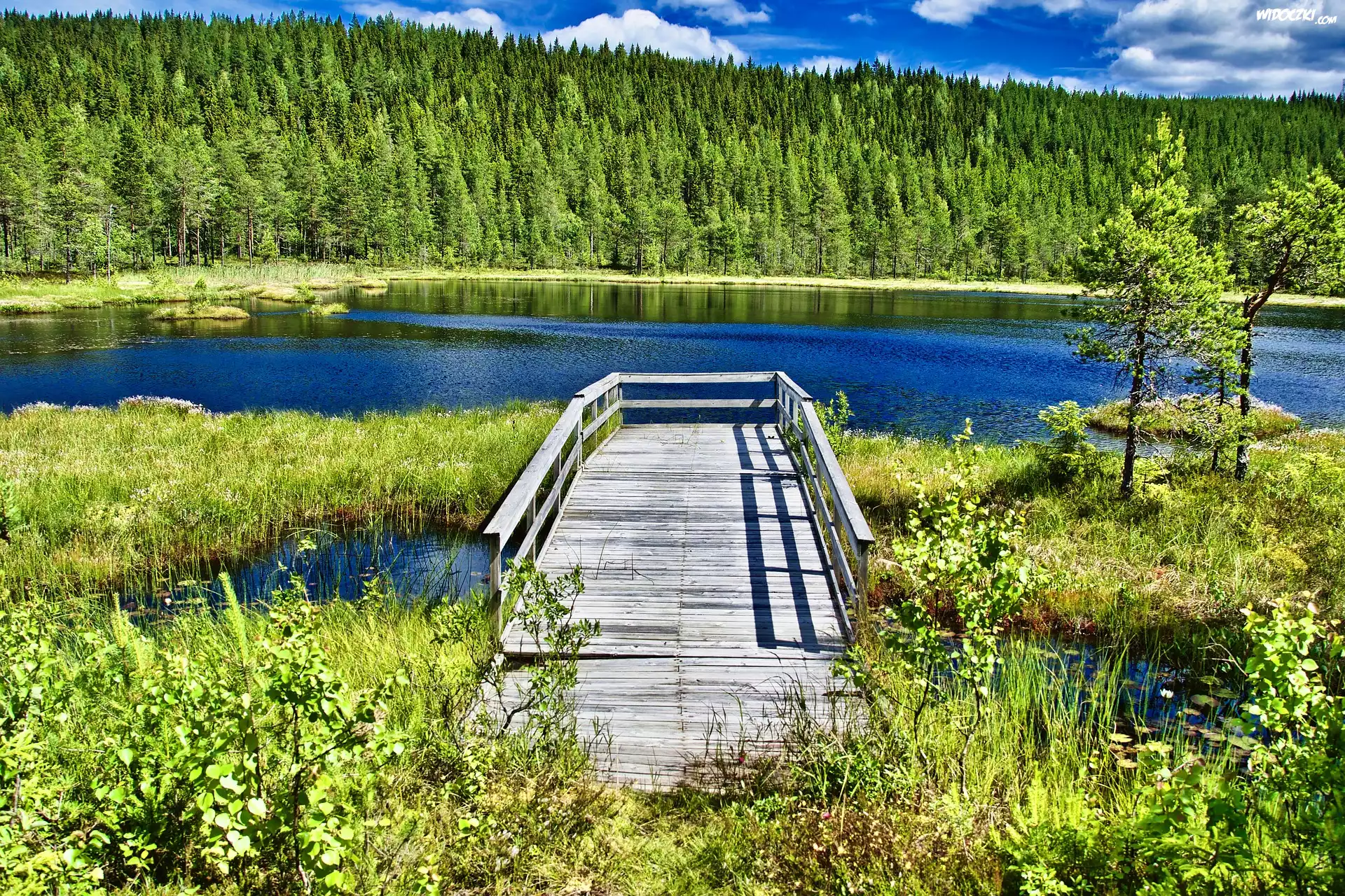 Zdjęcia, Pomost, Jezioro, Las, Trawa