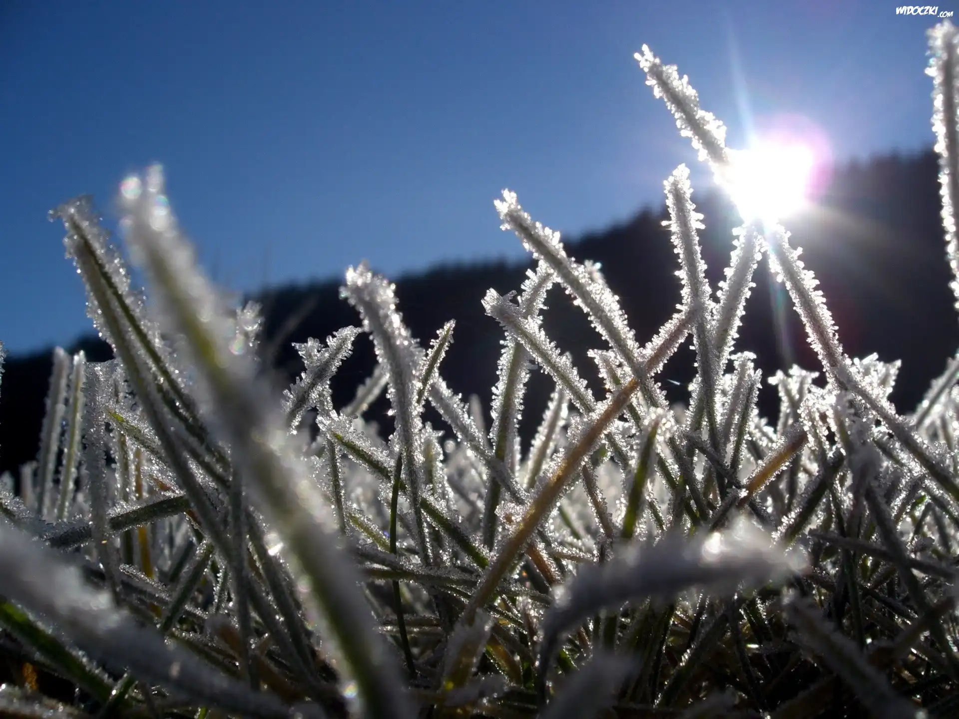 Zdjęcia, Trawa, Szadź, Pronienie, Słońca