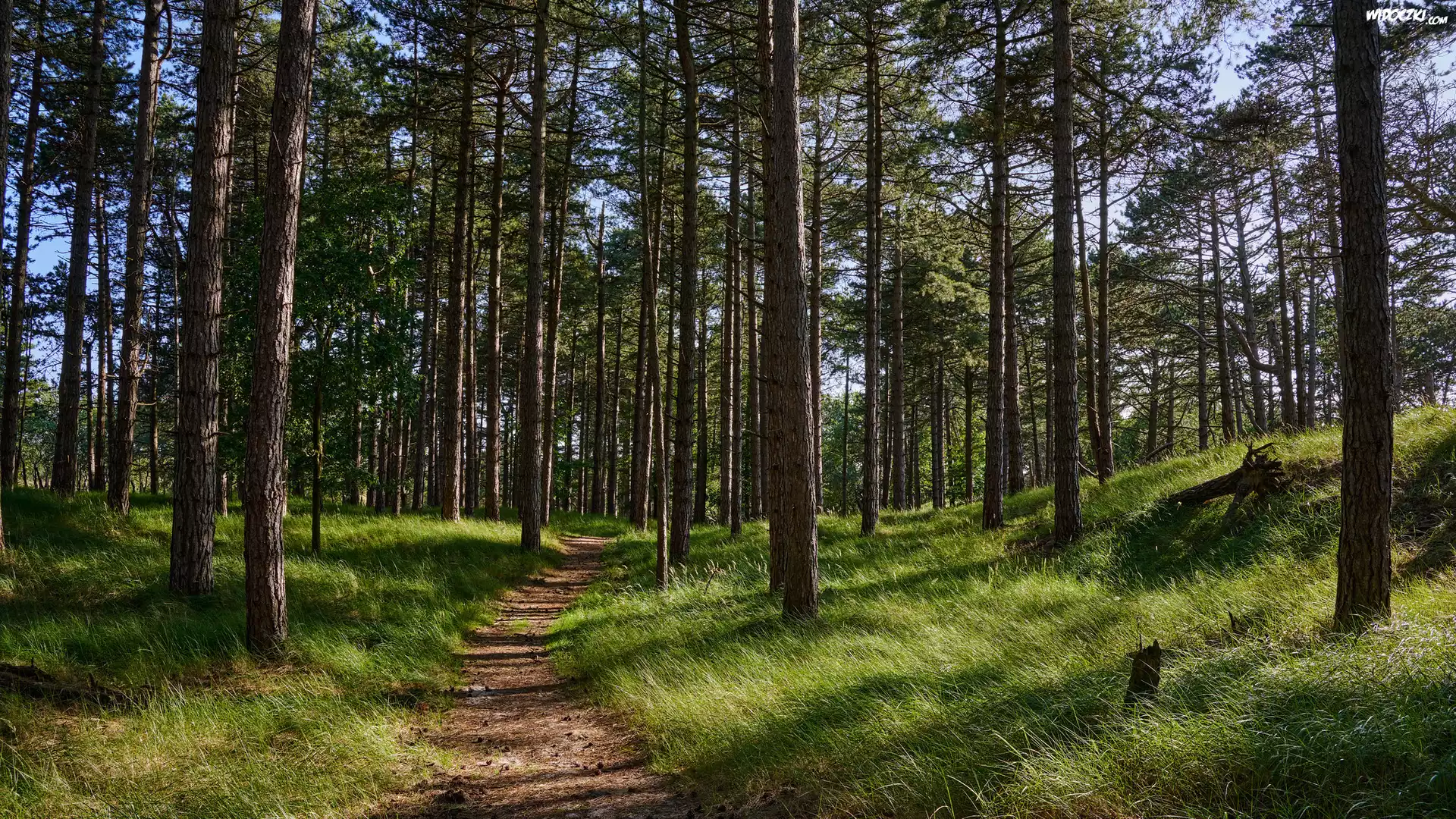 Zdjęcia, Ścieżka, Las, Drzewa, Trawa