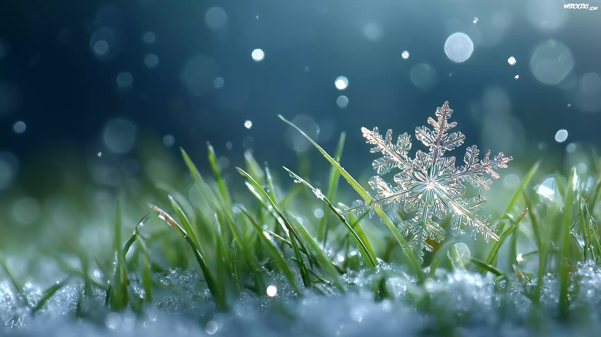Zdjęcia, Śnieżynka, Trawa, Śnieg, Grafika AI