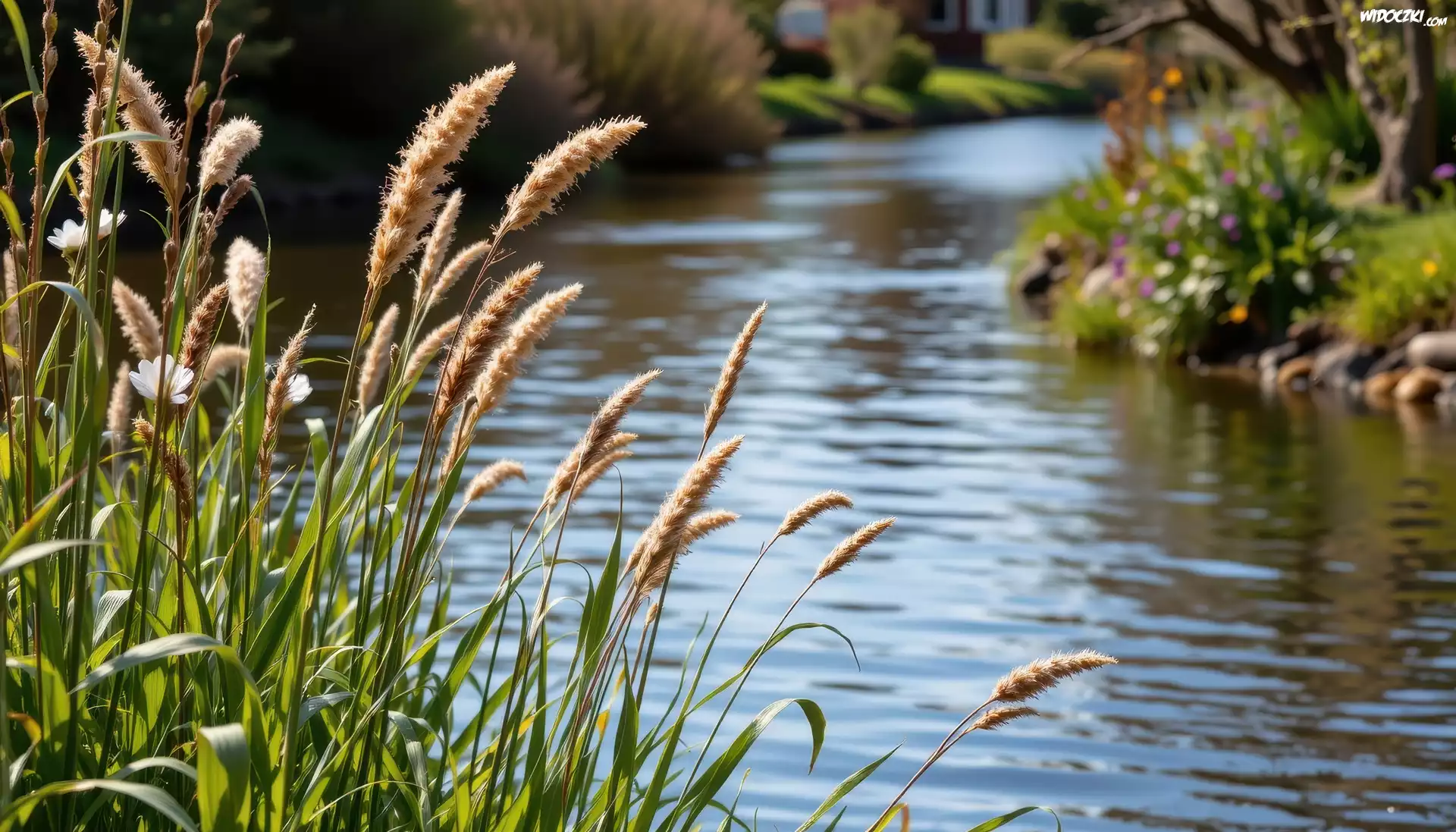 Zdjęcia, Kwitnąca, Trawa, Szuwary, Rzeka, Grafika