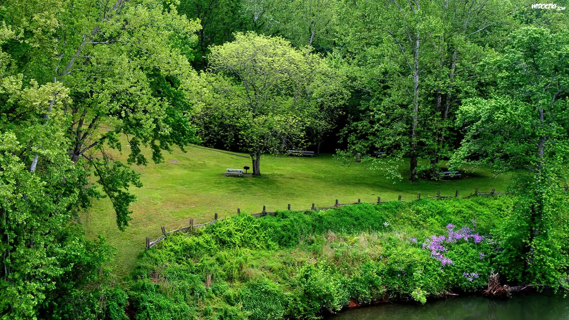Zdjęcia, Park, Trawnik, Ławki