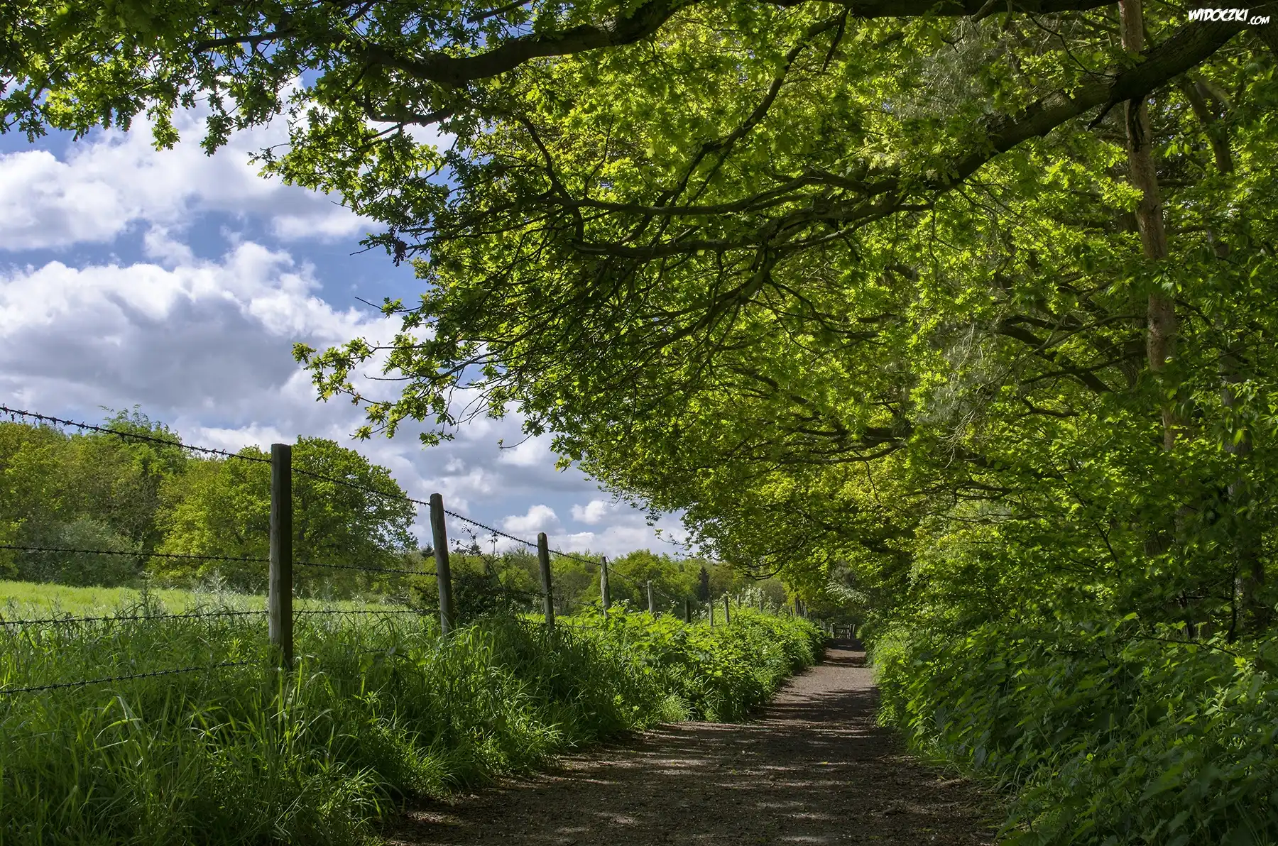 Zdjęcia, Drzewa, Trawy, Płot, Ogrodzenie, Niebo, Ścieżka, Droga