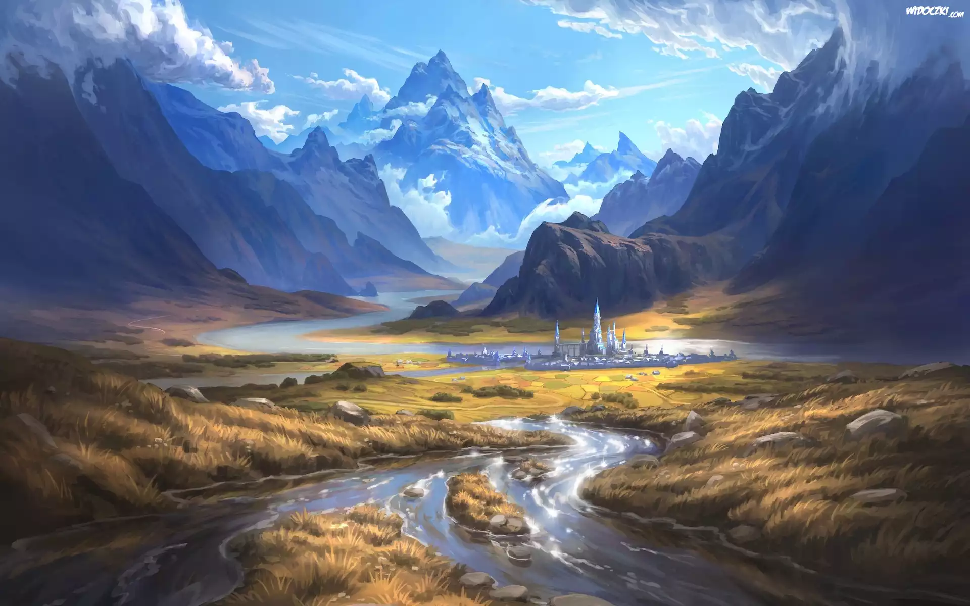 Zdjęcia, Grafika, Góry, Rzeka, Trawy
