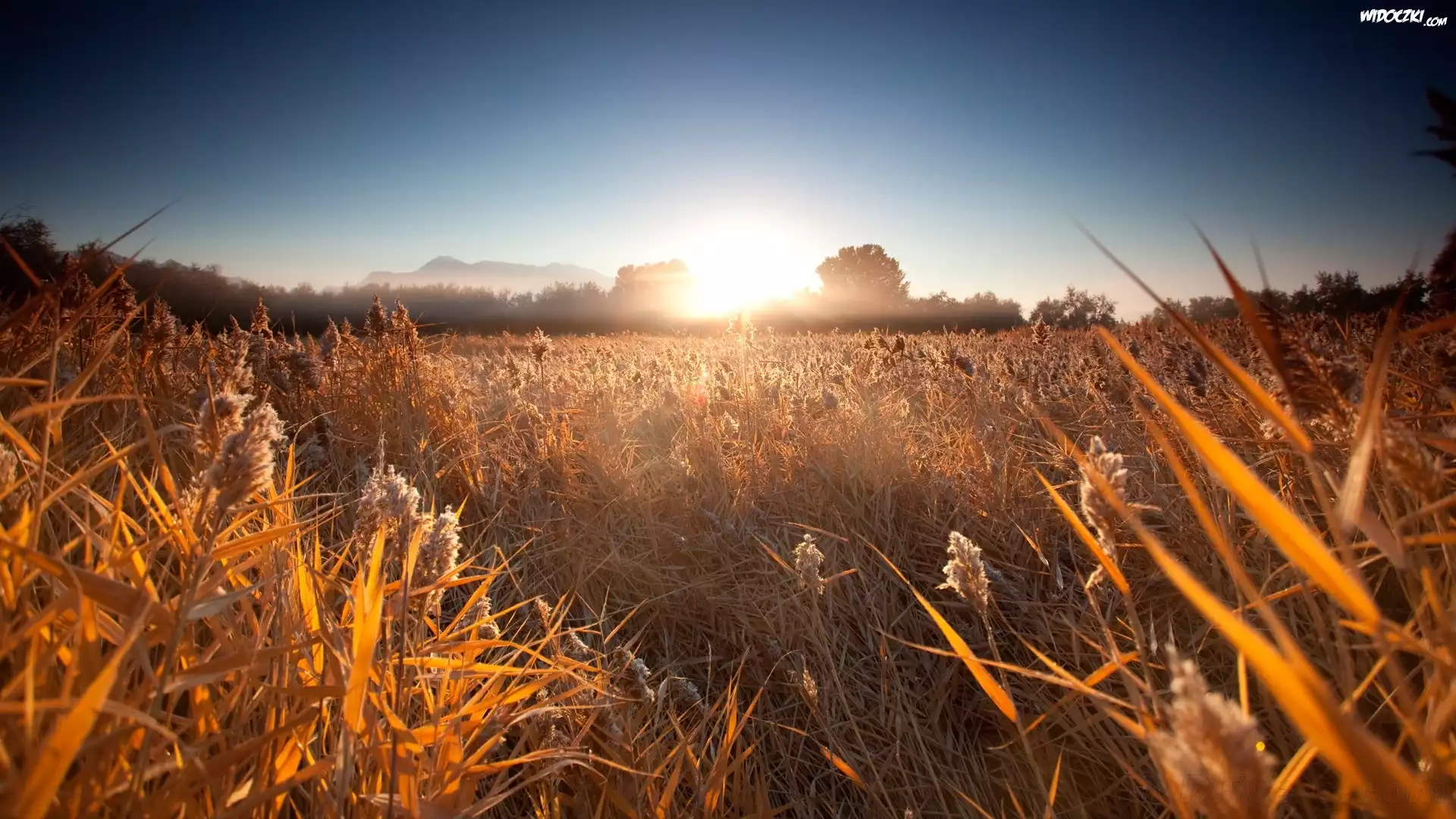 Zdjęcia, Trawy, Zachód słońca, Farmy i pola