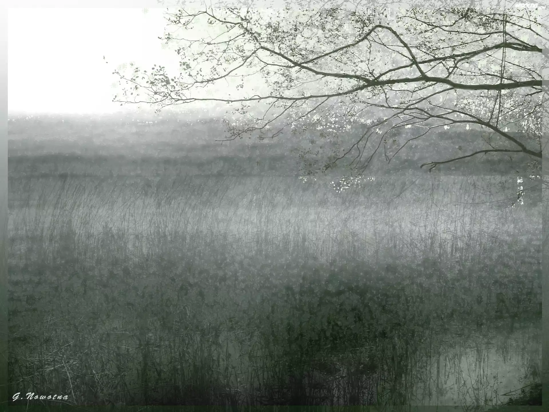 Zdj臋cia, Jezioro, Trawy, Drzewo