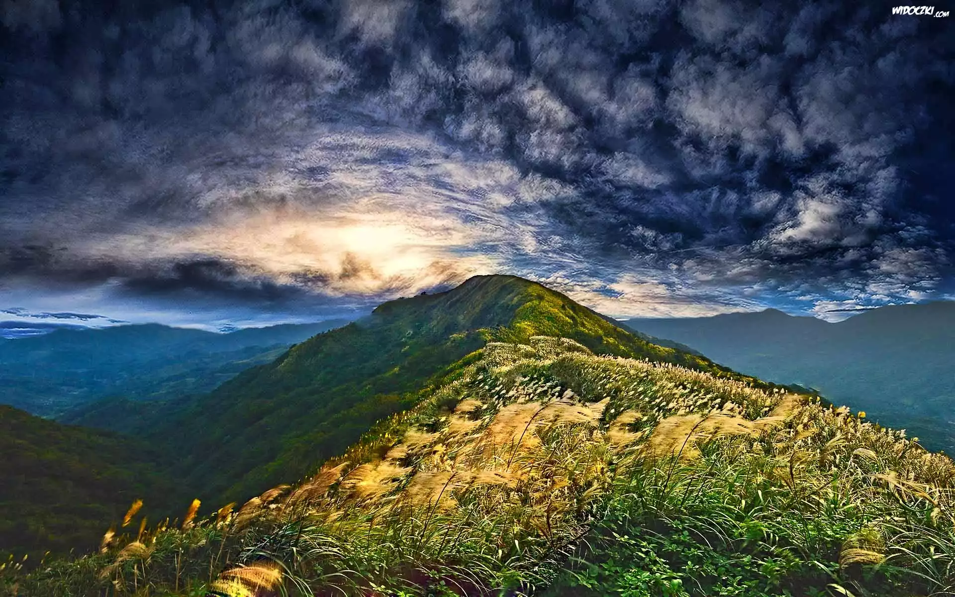 Zdjęcia, Wzgórza, Trawy, Chmury