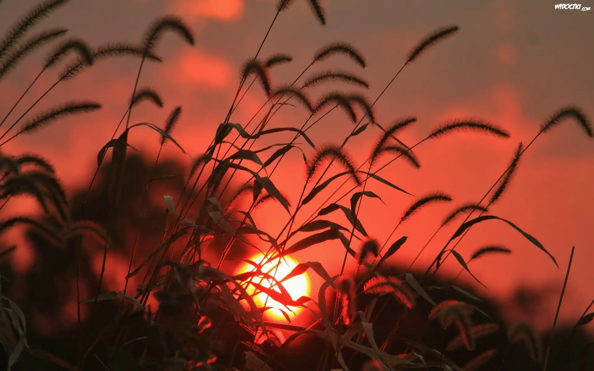 Zdjęcia, Trawy, Chmury, Zachód, Słońca