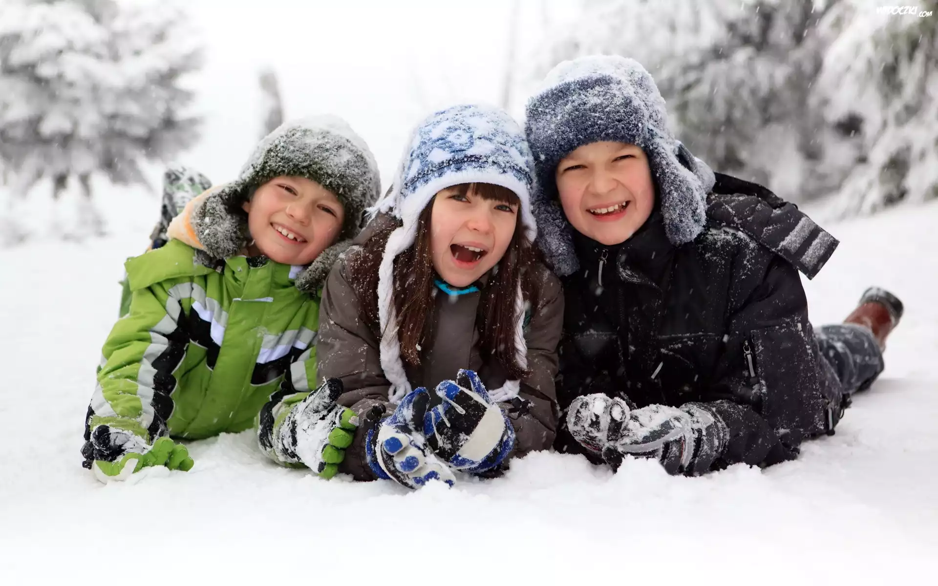 Zdjęcia, Troje, Dzieci, Zima, Śnieg, Zabawa