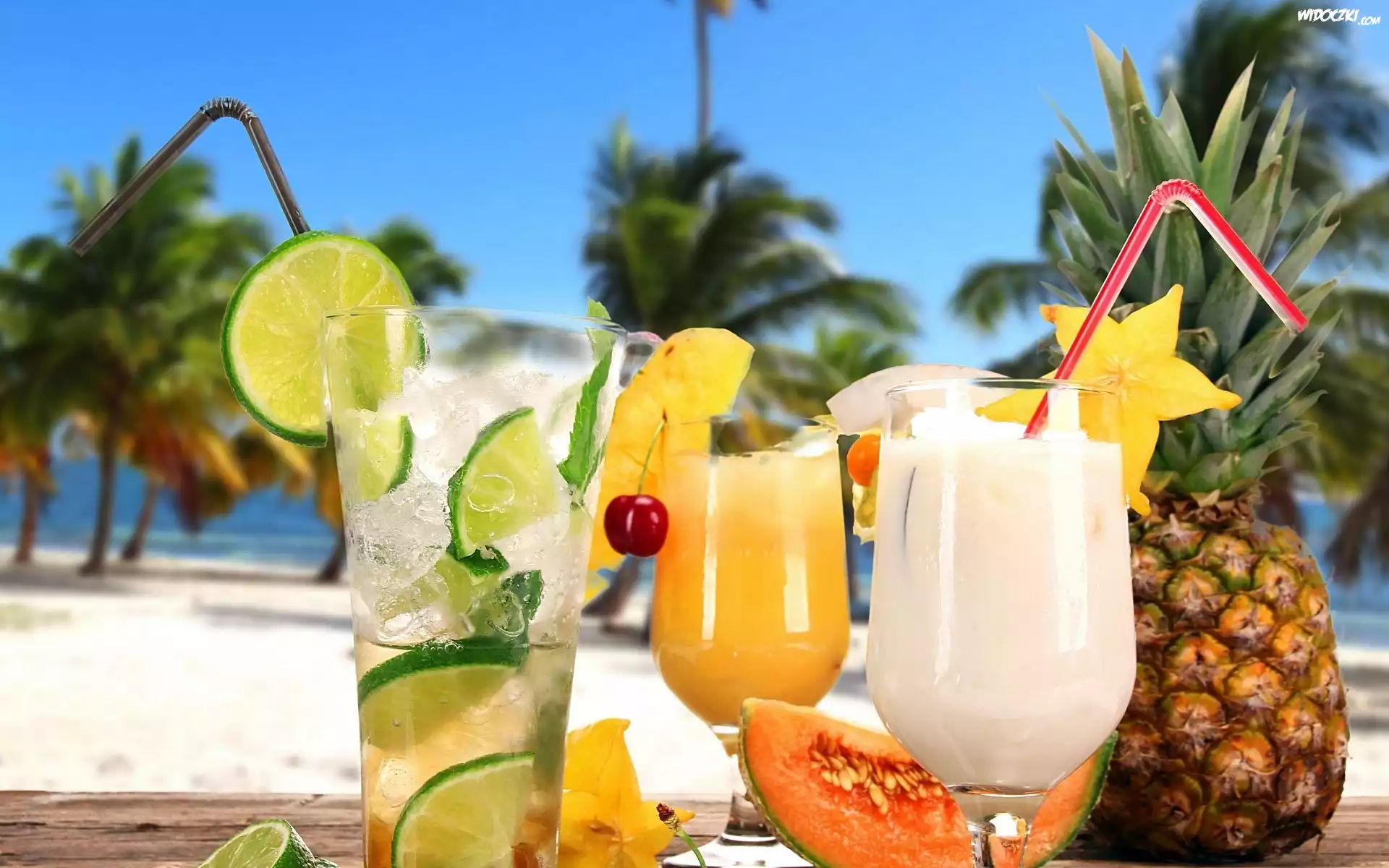 Tropikalne, Drinki, Plaża, Palmy, Lato
