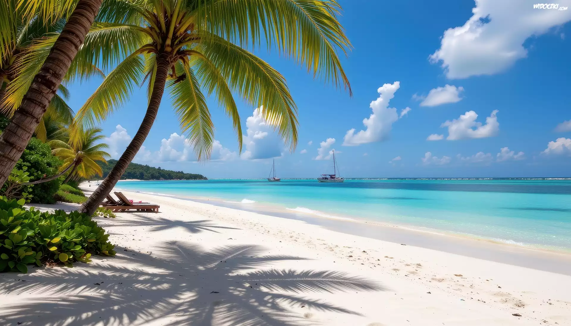 Plaża, Palmy, Morze, Tropiki, Grafika AI
