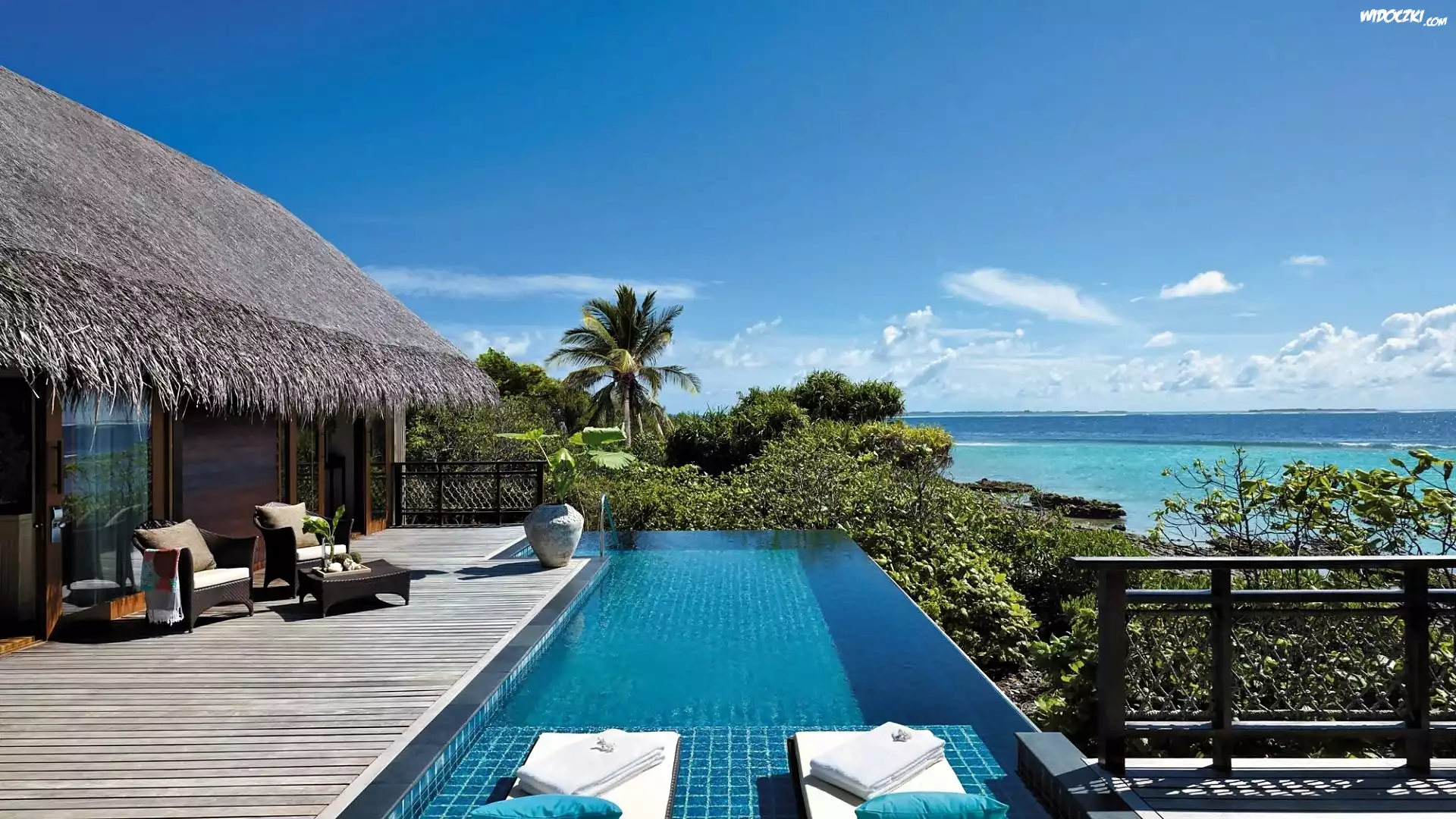 Tropiki, Hotel, Basen, Morze, Wybrzeże, Roślinność
