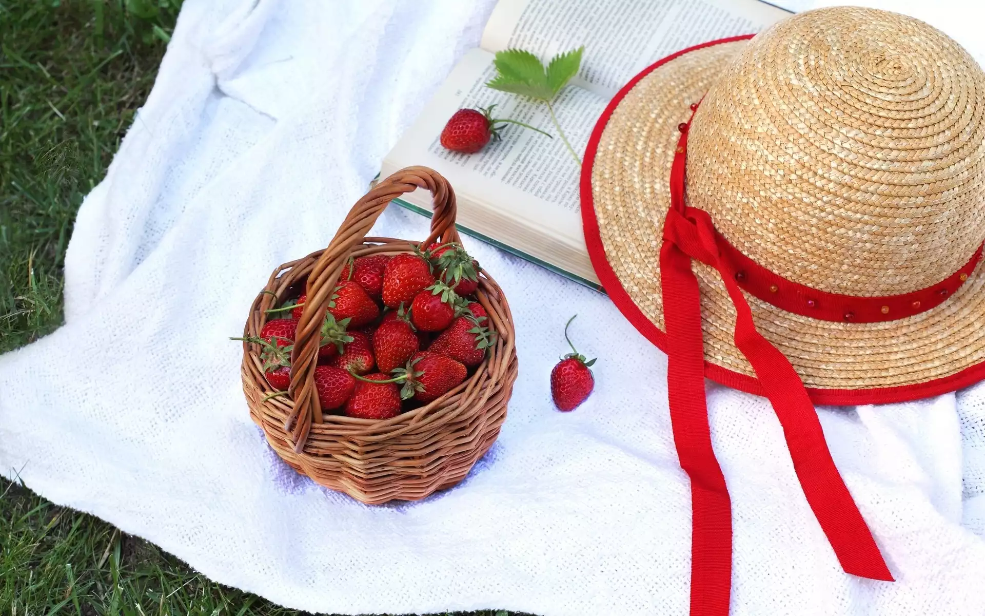 Truskawki, Łąka, Kapelusz, Książka