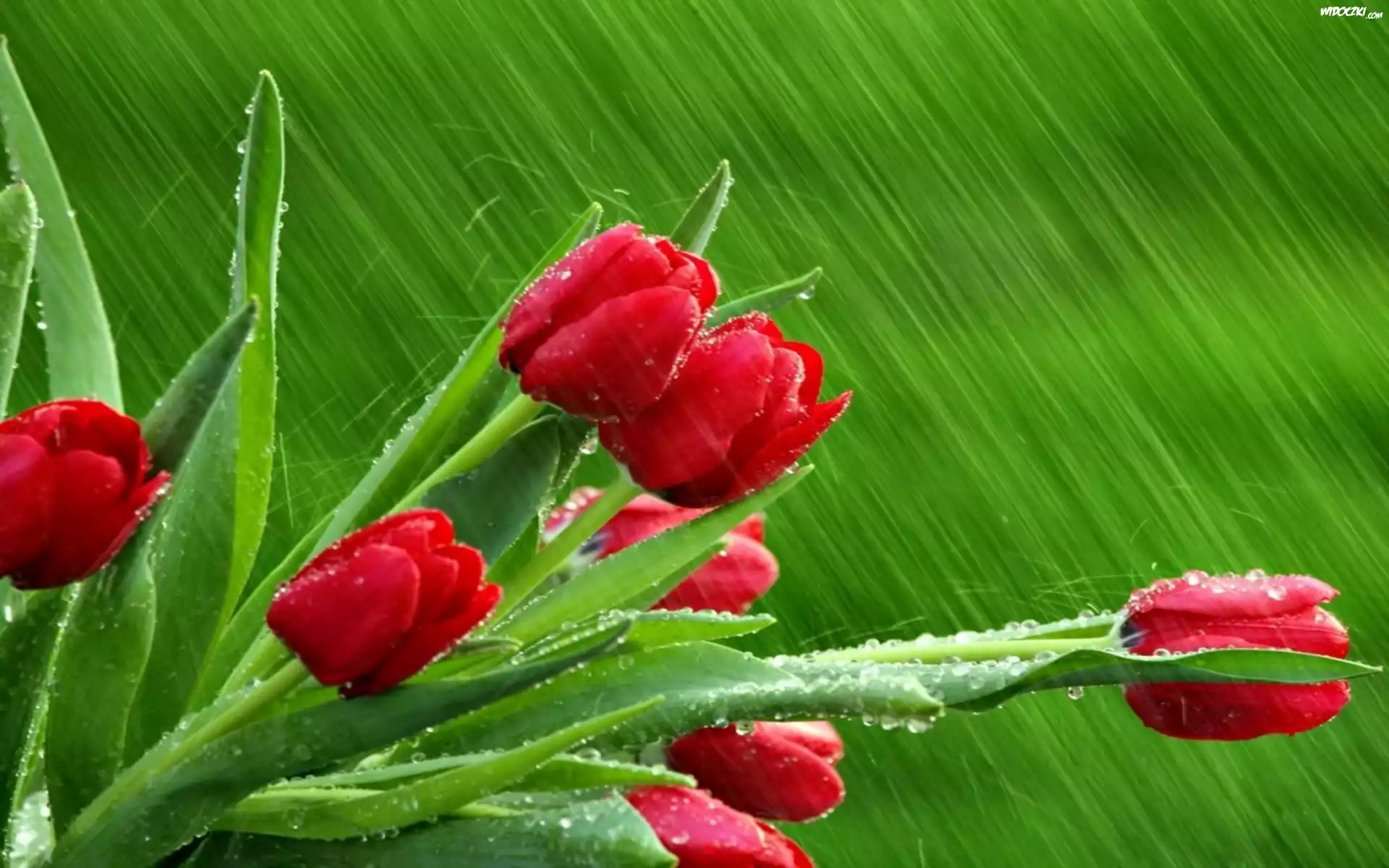 Zdjęcia, Czerwone, Tulipany, Deszcz