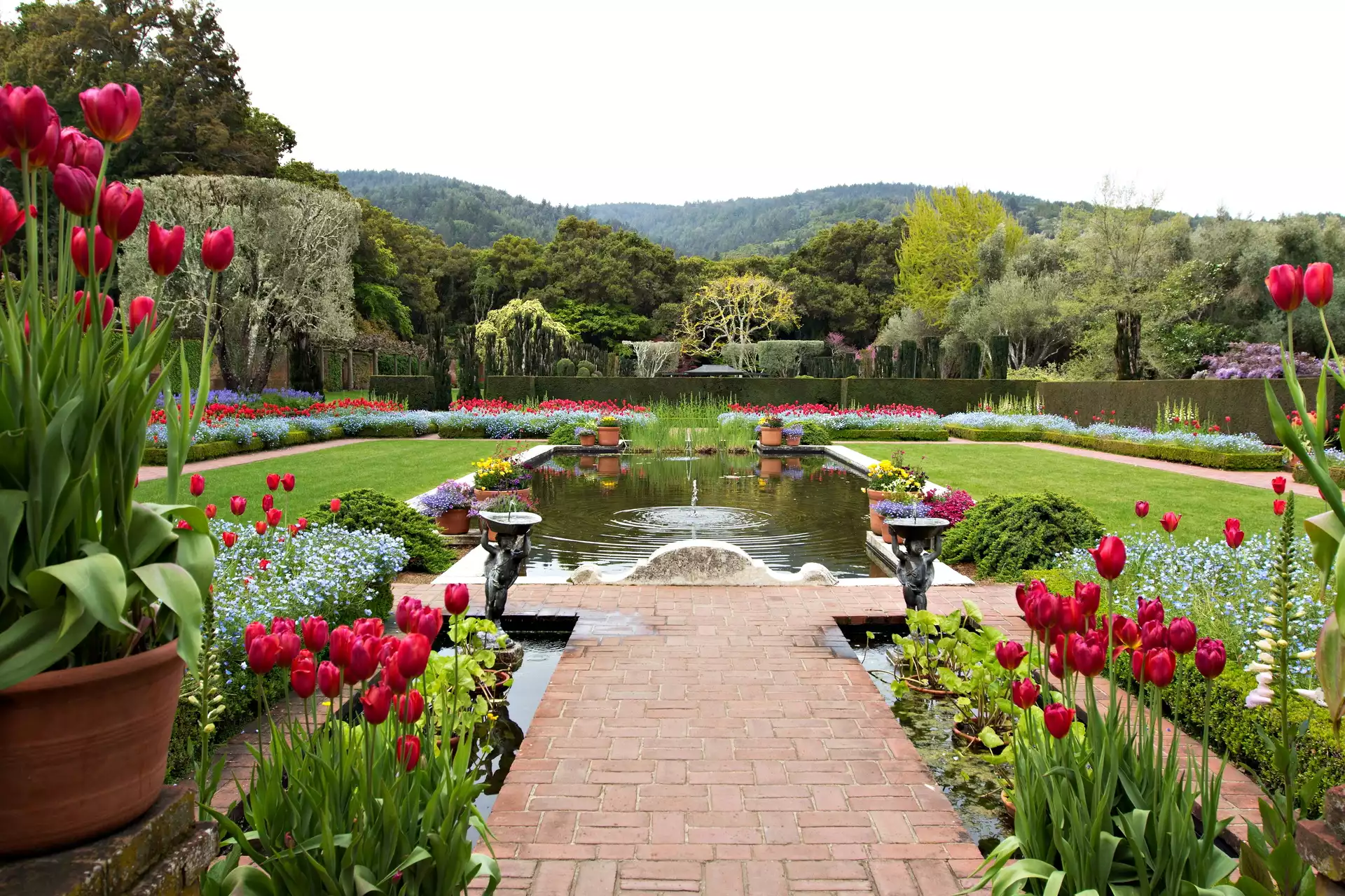 Ogród, Tulipany, Sadzawka