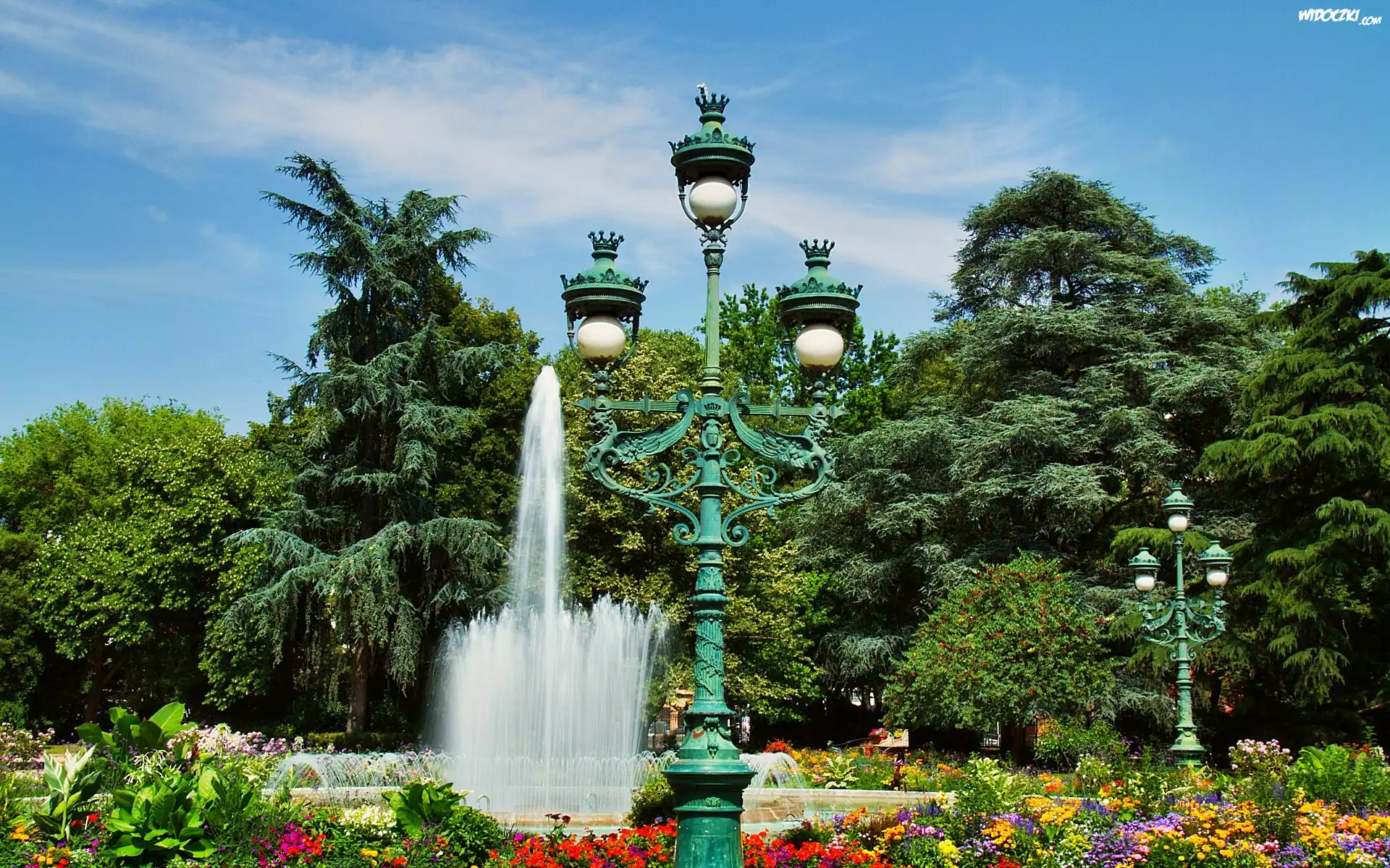 Zdjęcia, Tuluza, Francja, Park, Fontana, Latarnie