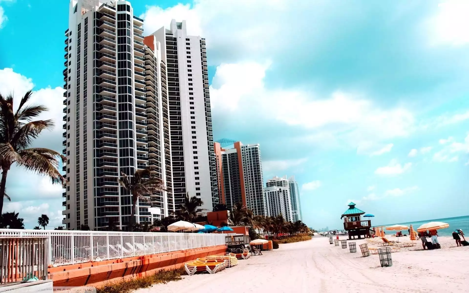 Plaża, Turyści, Wieżowce, Palmy, Ocean, Miami, Floryda