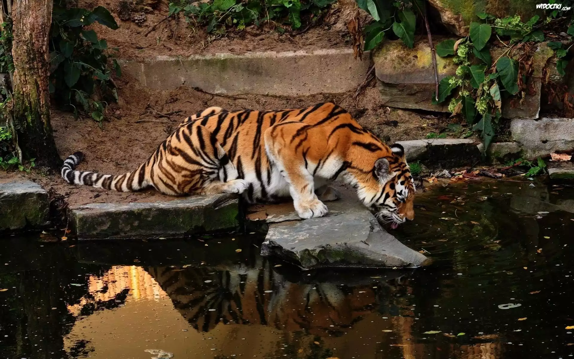 Zdjęcia, Tygrys, Wodopój, Skały, Las